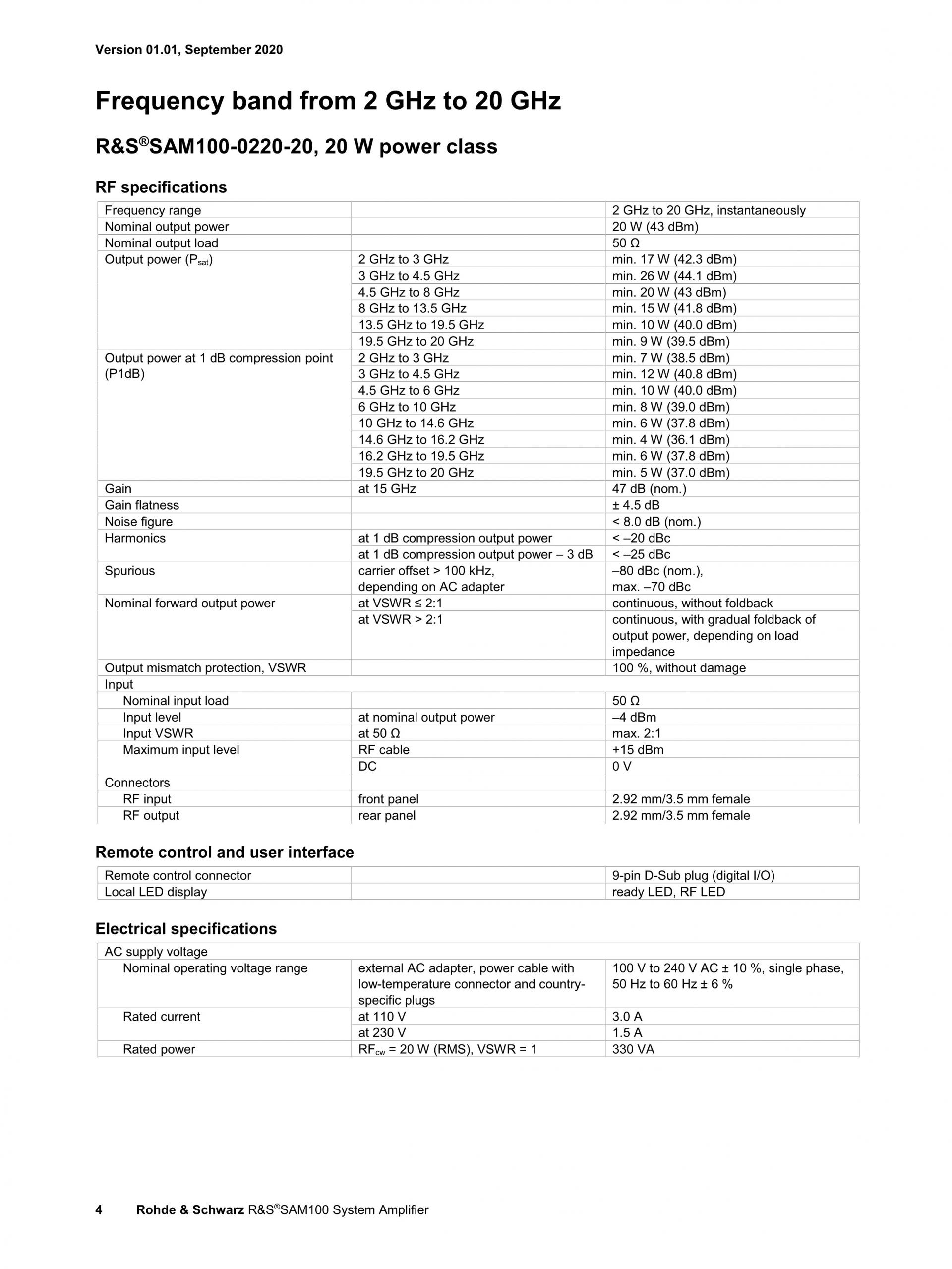 ROHDE & SCHWARZ SAM100 시스템 증폭기