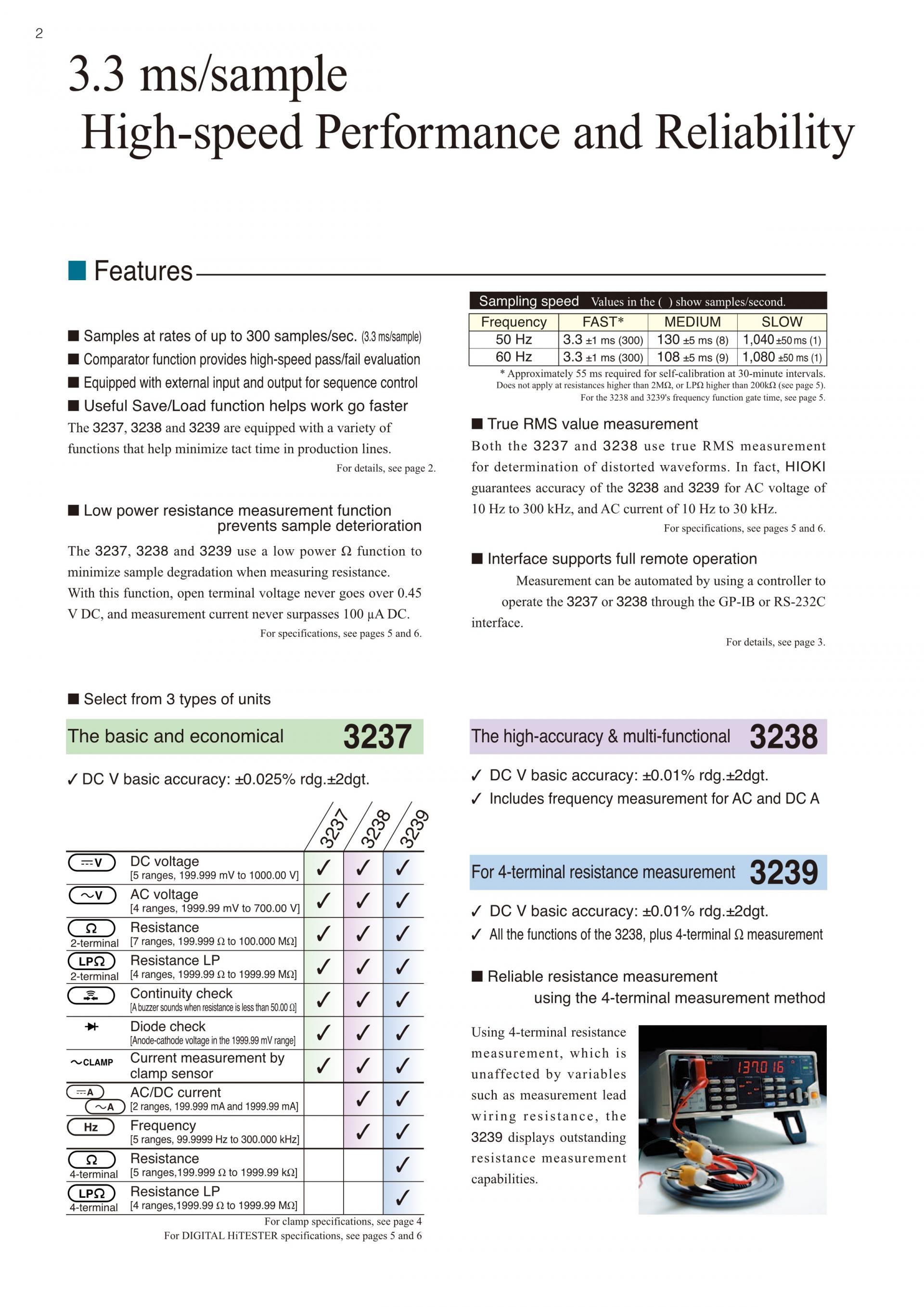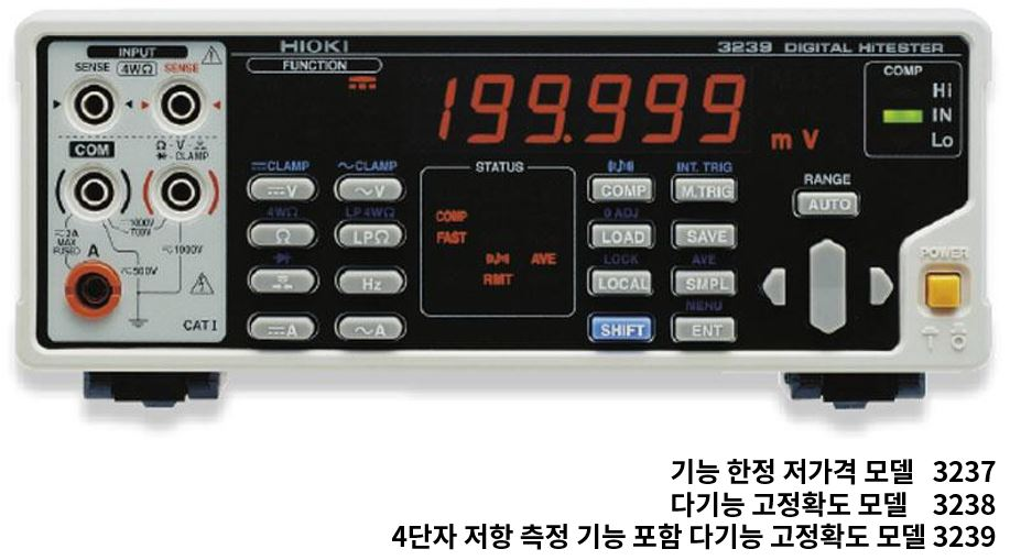 선택할 수 있는 3종류 5.5자리 디지털 멀티미터3230 시리즈는 측정 스피드와 안정성을 철저히 추구한 표준 모델입니다. 3239 4단자 저항 측정, 전류, 주파수 측정까지 가능한 광대역 5.5자리 DMM | ![]() |
