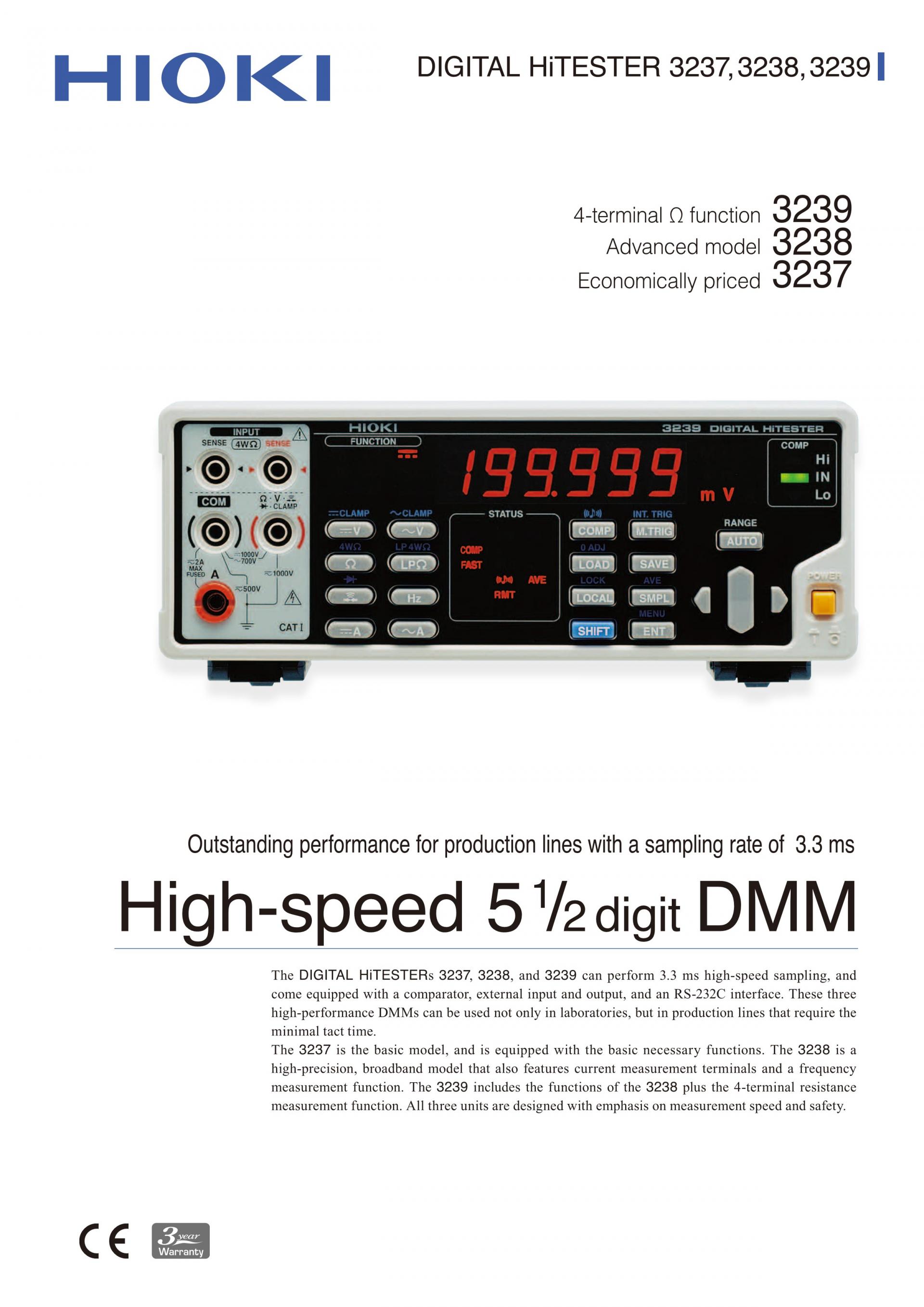 선택할 수 있는 3종류 5.5자리 디지털 멀티미터3230 시리즈는 측정 스피드와 안정성을 철저히 추구한 표준 모델입니다. | ![]() |
