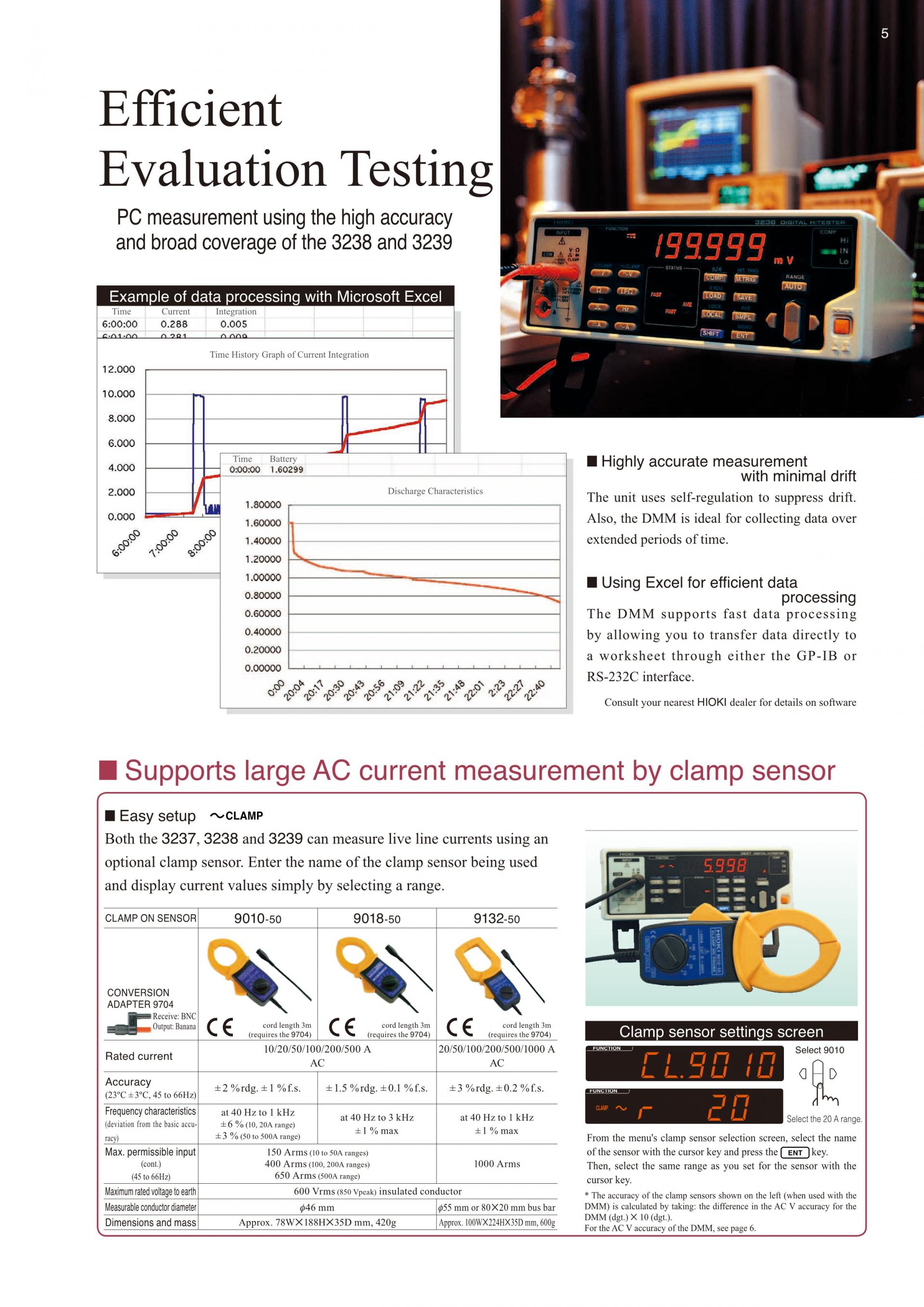클램프센서 조합으로 최대 AC1000A, DC200A 측정에 대응클램프 온 센서 및 AC/DC 커런트 프로브의 전용 모드를 표준 장비 활선 상태의 최대 전류 측정을 간단하게 실시할 수 있습니다. |