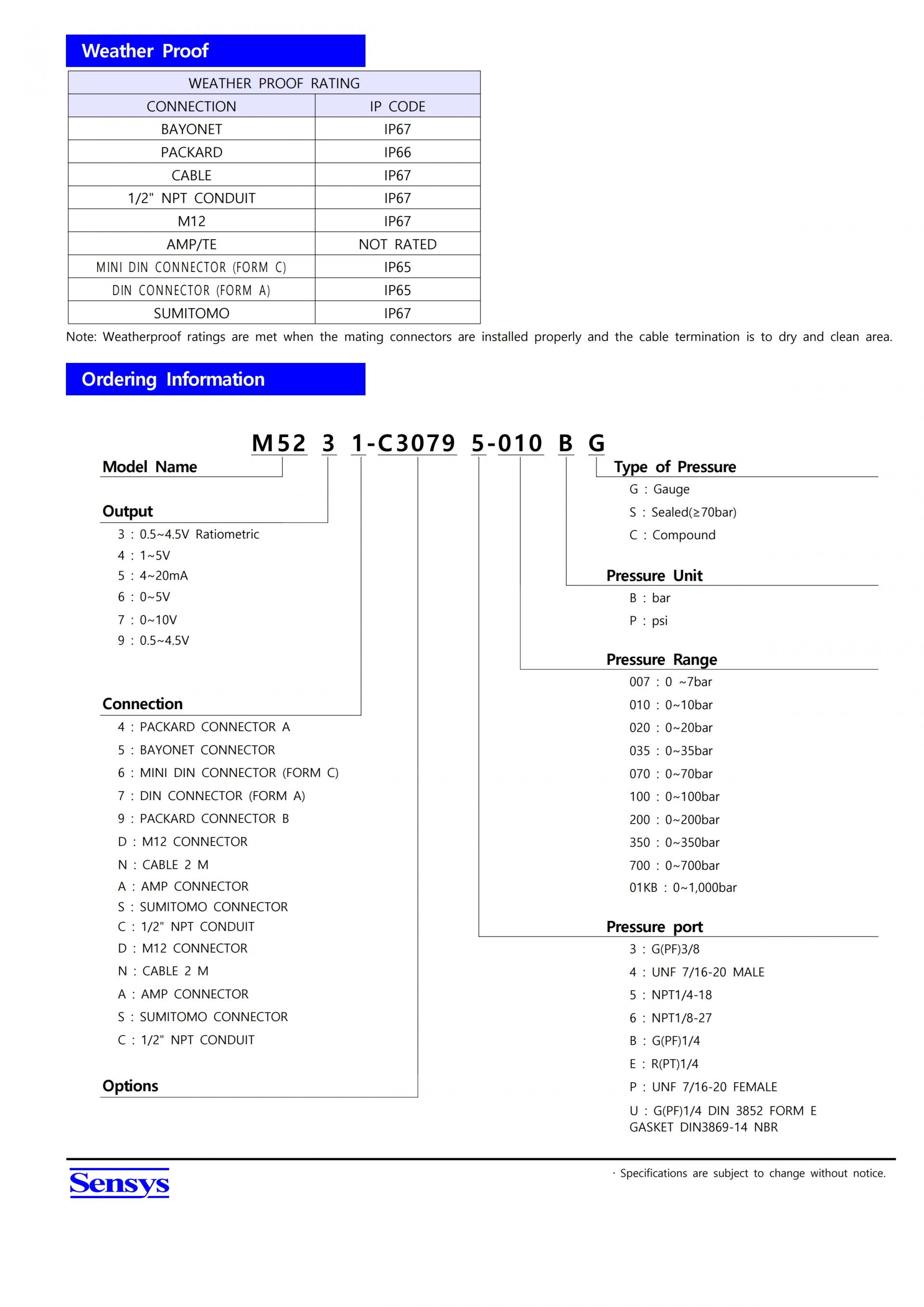 - 측정 압력 범위 0∼ 1000bar g