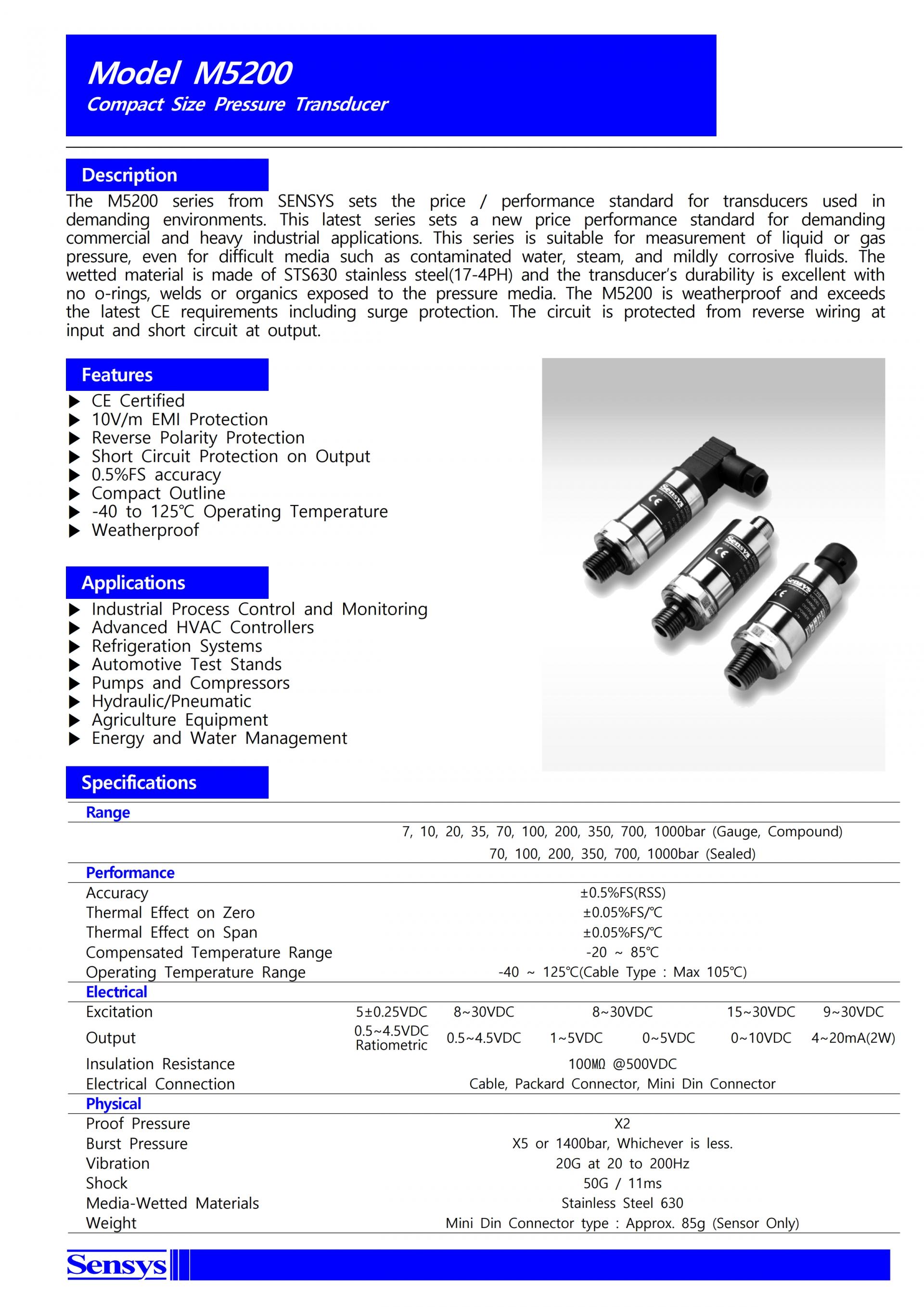 SENSYS M5200 소형 저가격형 압력트랜스미터