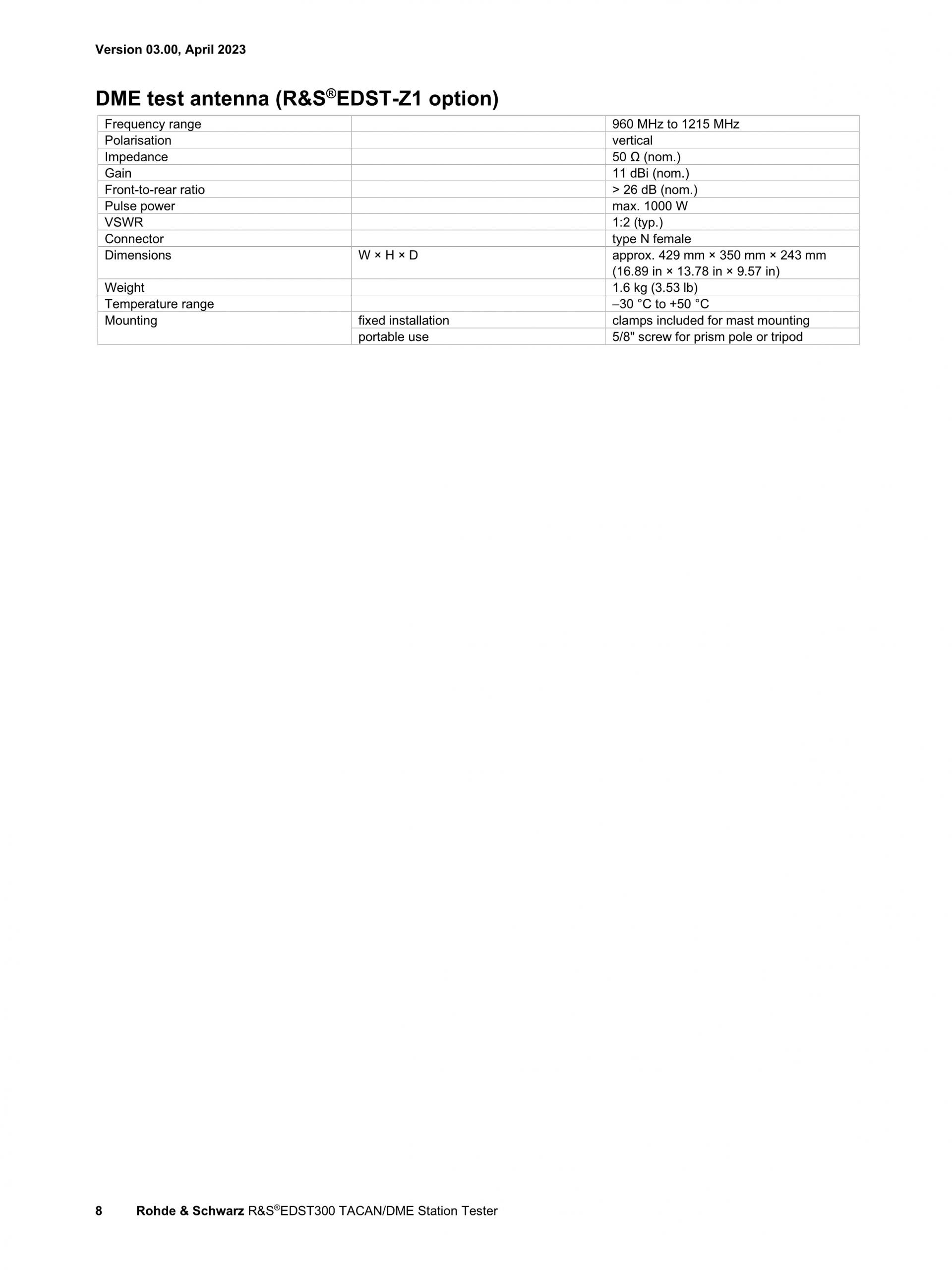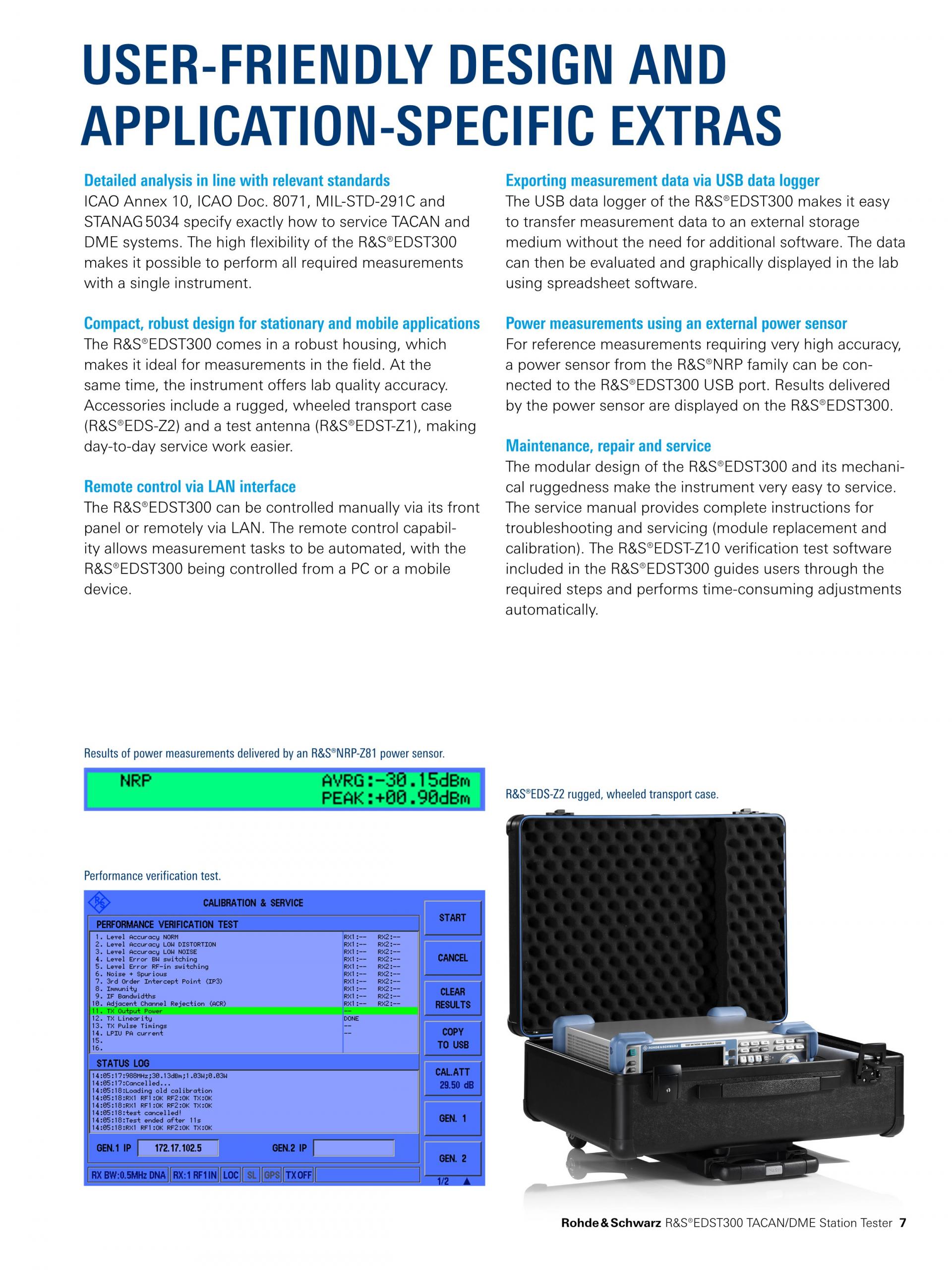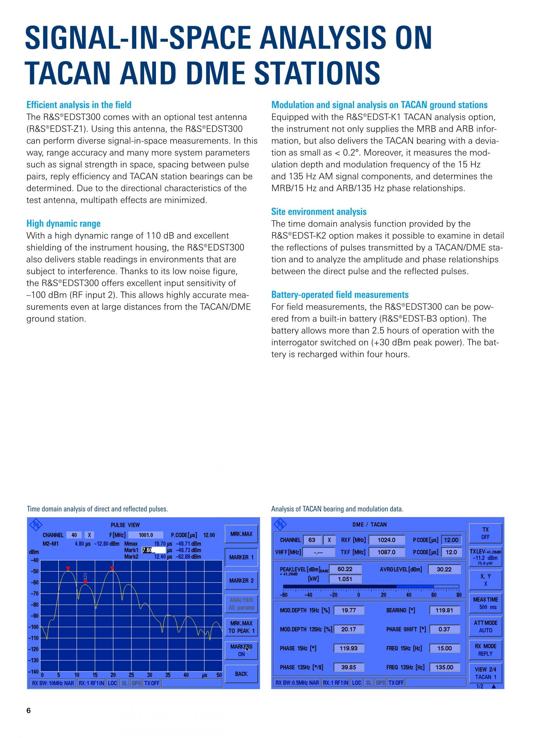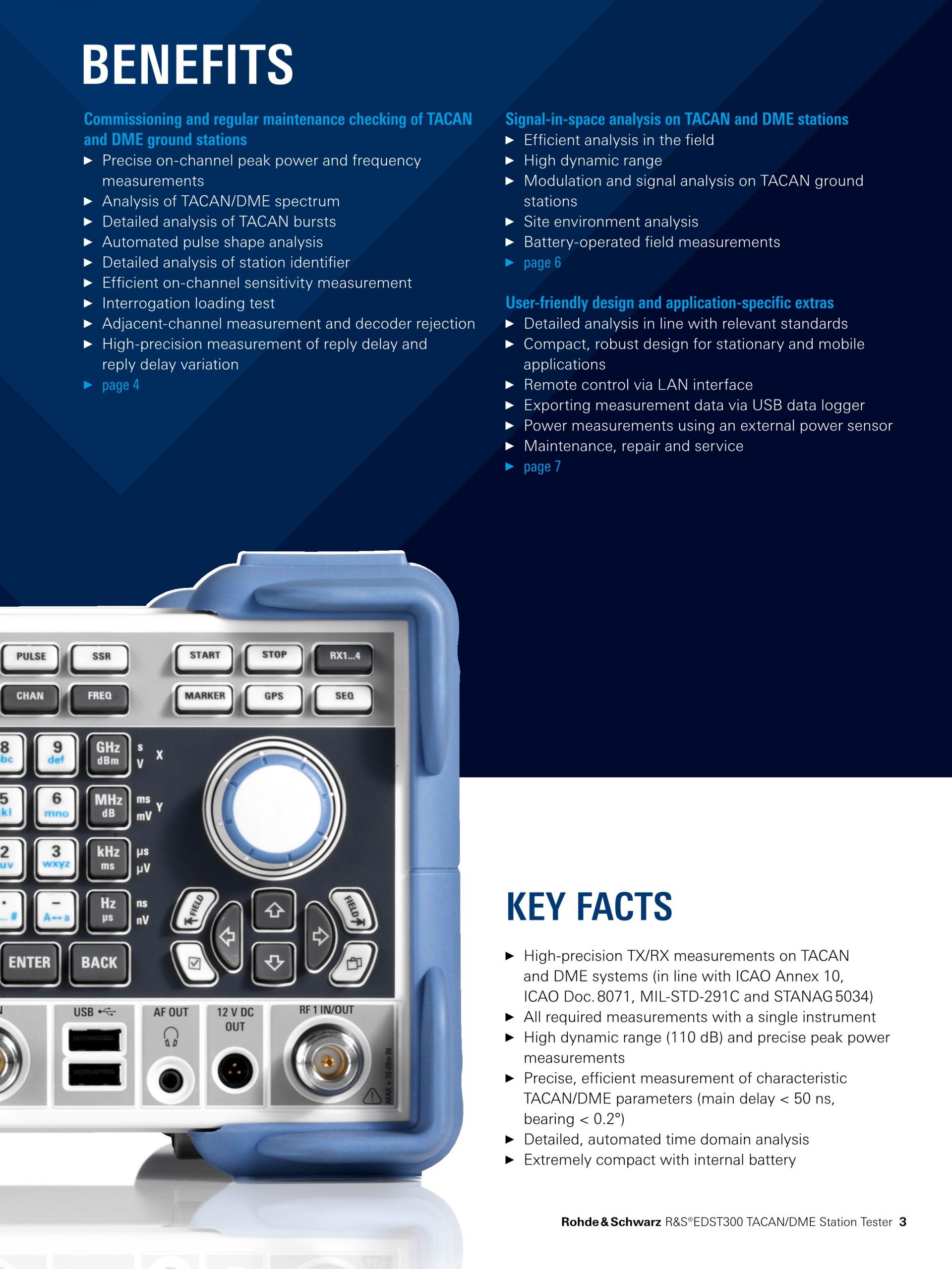 R&S®EDST300 TACAN/DME Station Tester는 펄스 지상 항법 시스템의 시운전, 테스트, 수리를 위해 설계된 분석기입니다. 넓은 다이내믹 레인지와 컴팩트한 디자인의 R&S®EDST300은 TACAN 및 DME 지상국에서 유선 및 현장 측정에 적합합니다.