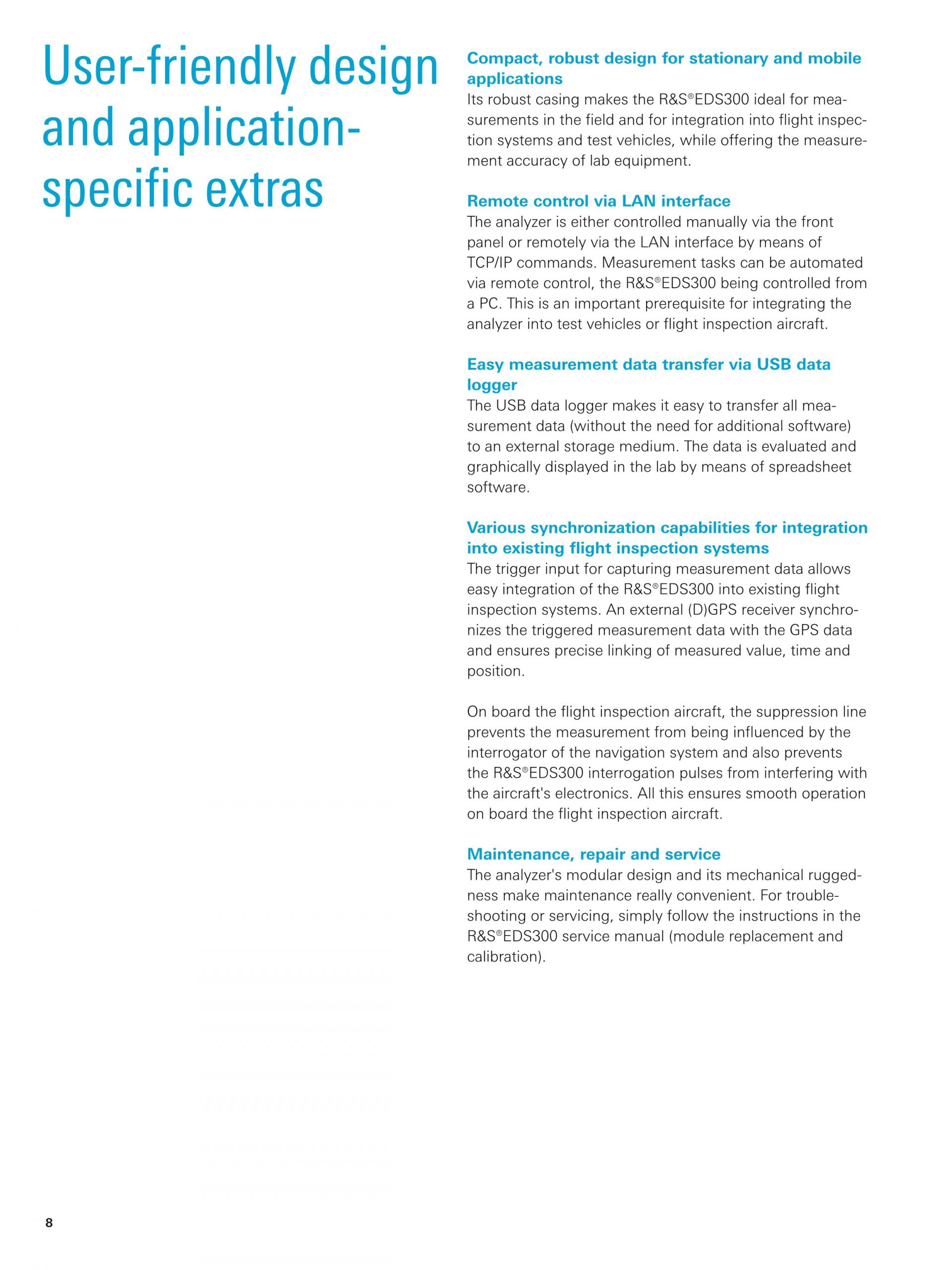 - ICAO Doc. 8071, ICAO Annex 10, STANAG 5034 및 MIL-STD-291C 준수