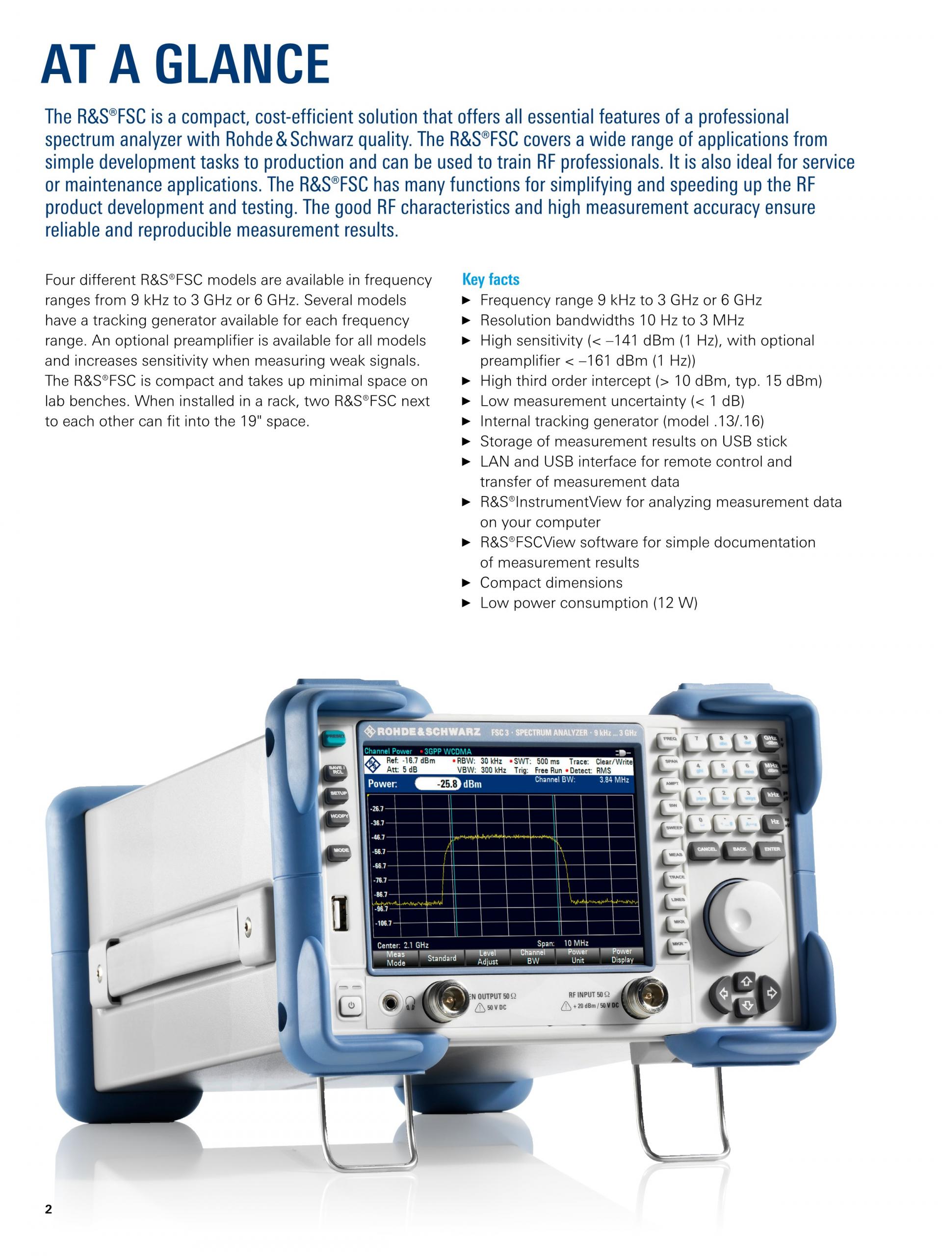 R&S®FSC는 로데슈바르즈만의 최상급 품질로 고성능 스펙트럼 분석기의 모든 필수 기능을 제공하는 초소형, 비용효율적 솔루션입니다. 이 솔루션은 간단한 개발 작업부터 생산에 이르는 다양한 어플리케이션을 지원하며, RF 전문가 교육에도 사용할 수 있습니다. 또한, 서비스 혹은 유지관리용