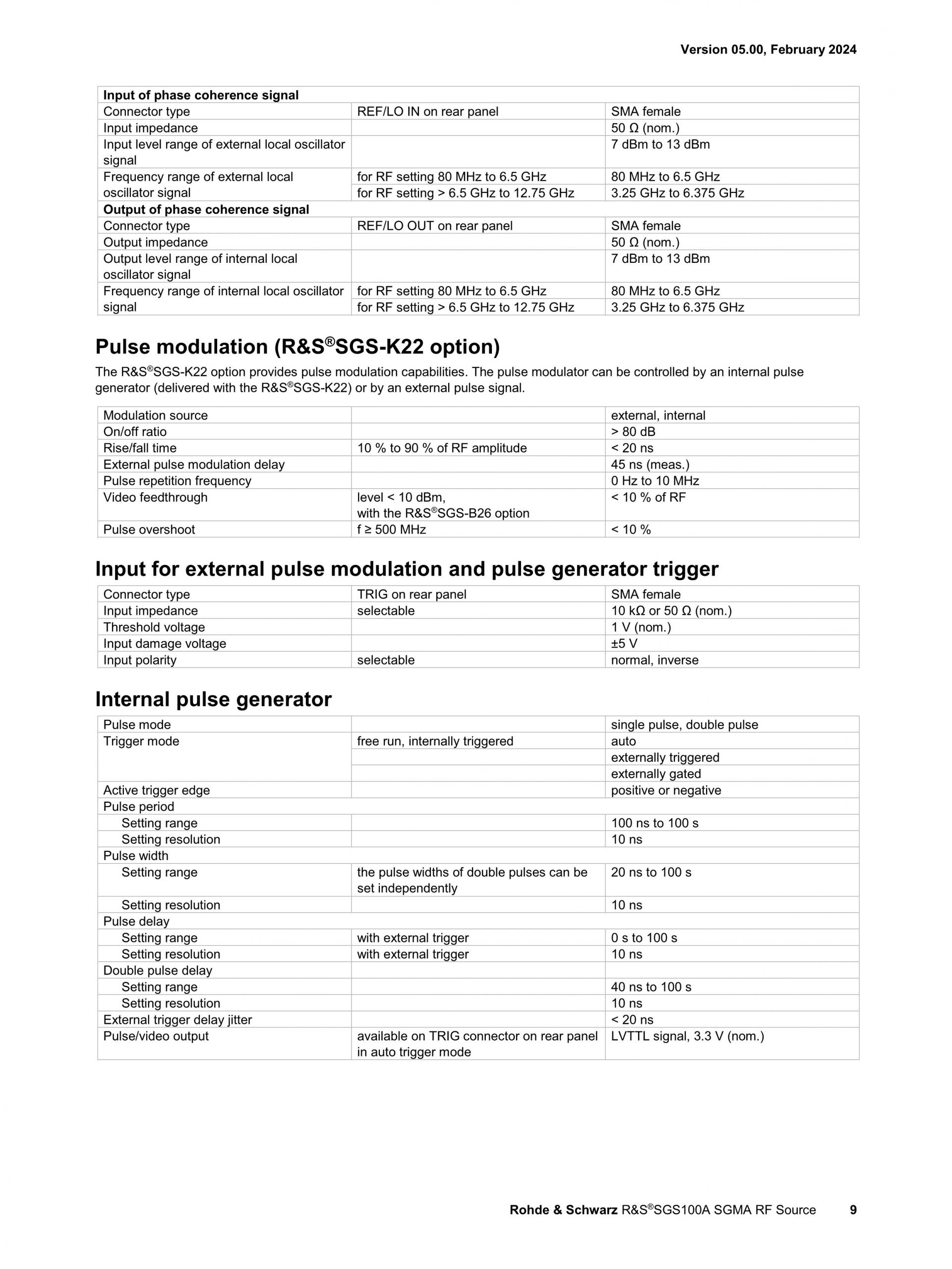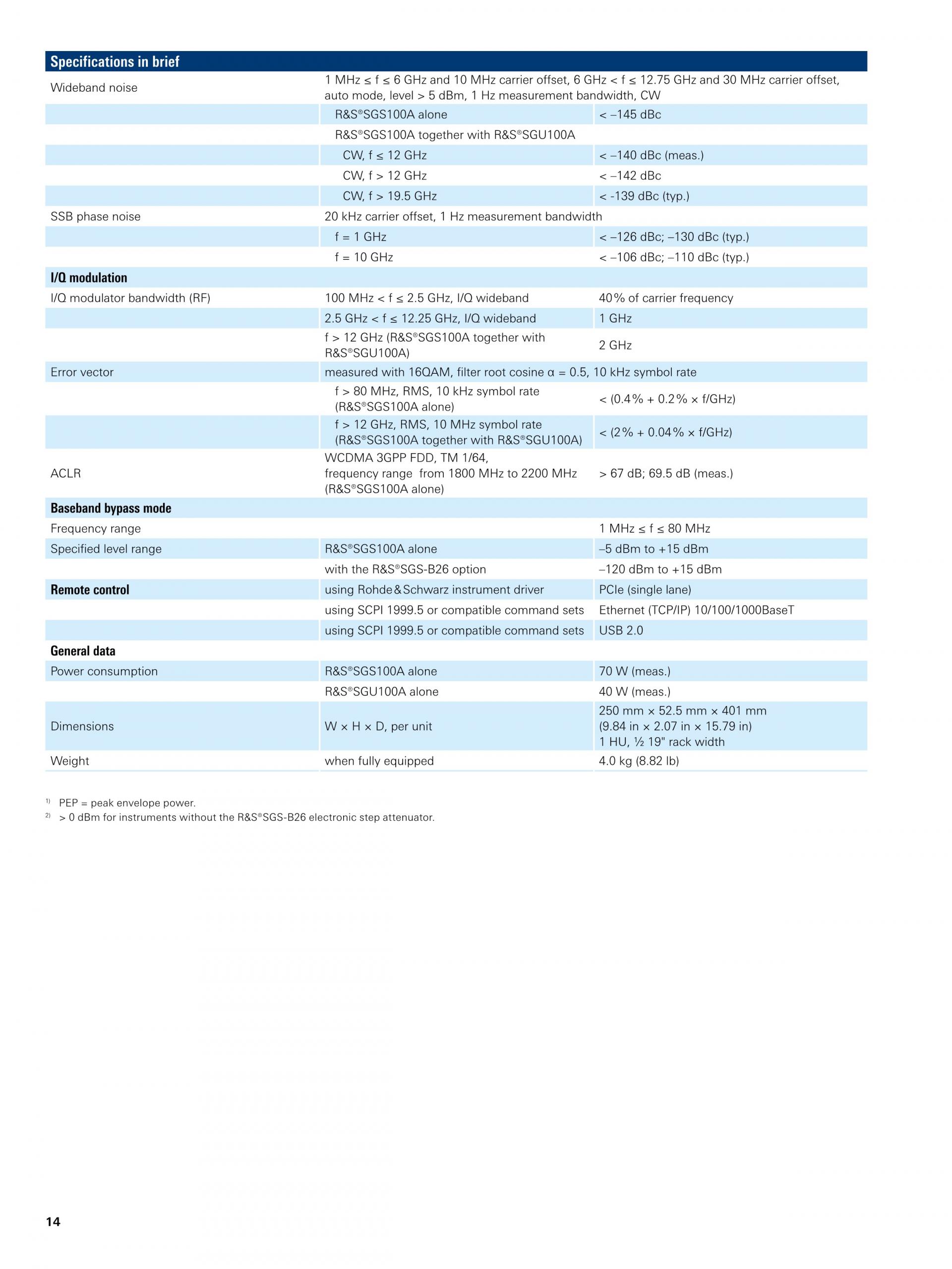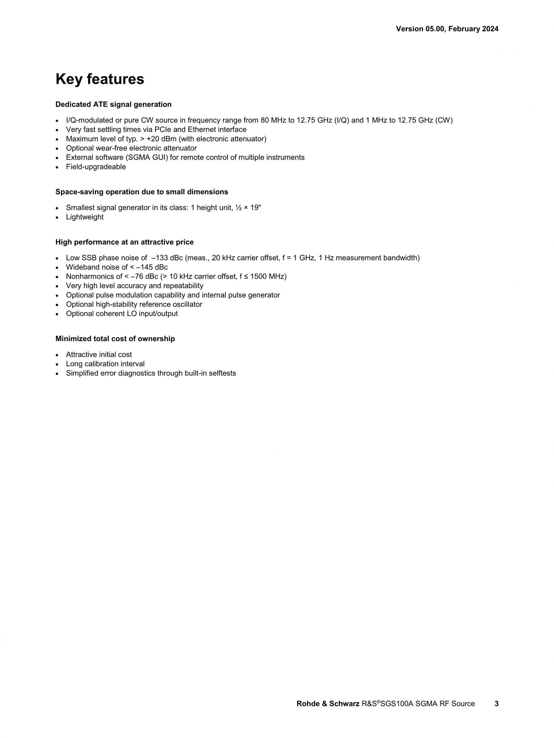 R&S®SGS100A는 자동 테스트 시스템의 요구사항을 충족하도록 설계된 RF 소스입니다. 이 제품은 통합 I/Q 변조기와 함께 사용하여 CW 소스 또는 벡터 신호 발생기로 사용할 수 있습니다. 이 벡터 신호 발생 버전은 최대 12.75GHz의 주파수 대역으로 필수 디지털 신호를 지원합니다. CW 버전은 유연한 로컬 오실레이터로 사용하거나 모바일 무선 표준에 대한 간섭 테스트로 사용 가능합니다.