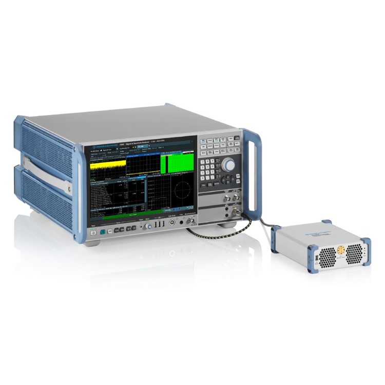 간편한 운용 R&S®FE170SR은 R&S®FSW Signal Analyzer와 R&S®RTP Oscilloscope의 동작 컨셉과 완벽히 일치합니다. 프론트엔드와 본체 사이에서 LAN, IF, 그리고 REF 커넥터만 연결하면 충분합니다. 복수의 기기를 프로그래밍할 필요가 없으므로 자동 측정을 쉽고 안정적으로 셋업할 수 있습니다. | ![]() R&S®FE170SR 연결 R&S®FE170SR Frontend를 연결한 R&S®FSW |