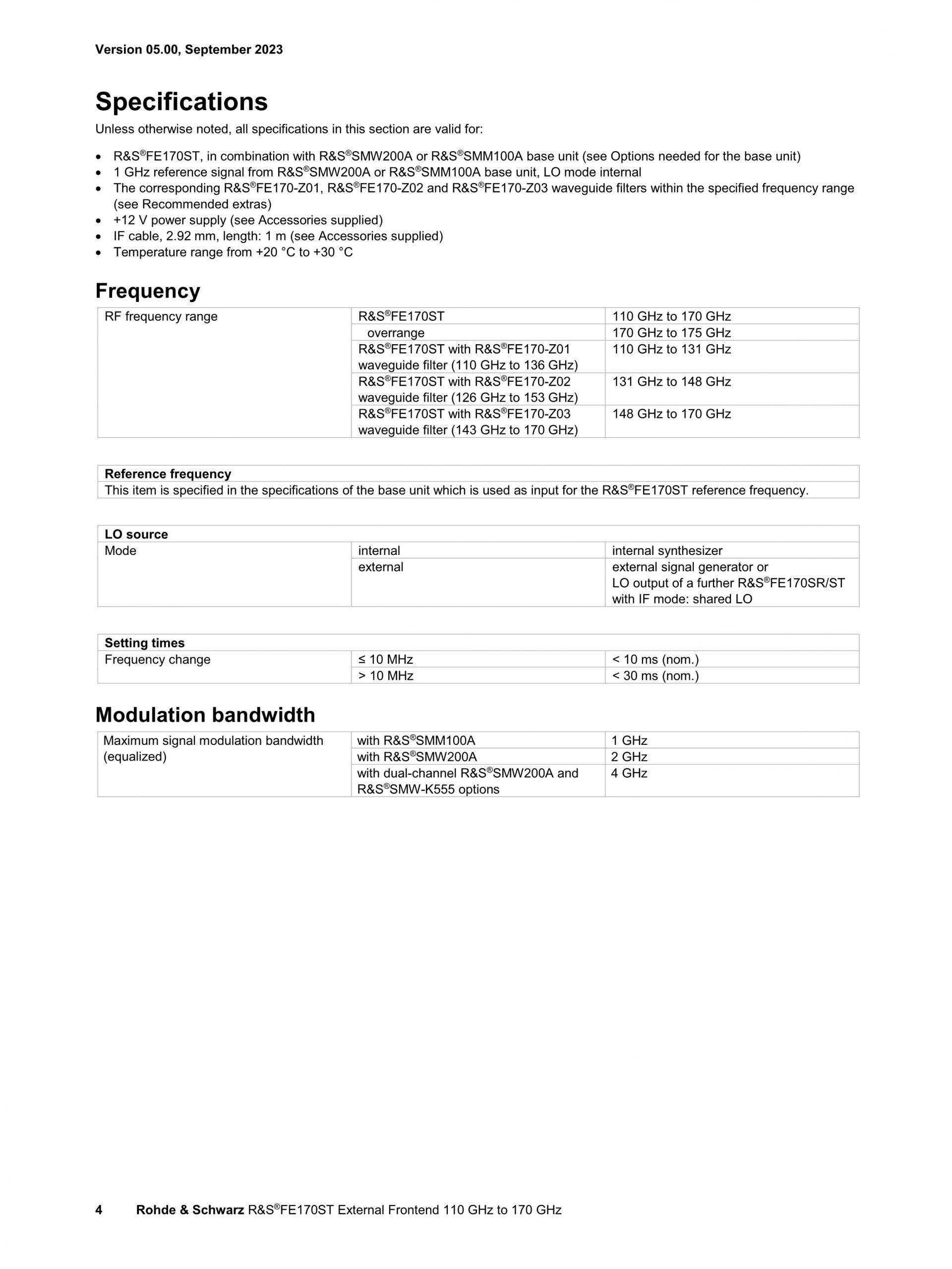 R&S®FE170ST는 Sub-THz 및 6G 연구에 적합합니다. R&S®SMW200A 및 R&S®SMM100A와 연결되어 주파수 대역을 D-Band(110 GHz ~ 175 GHz)로 확장시킵니다. 개발자는 차세대 이동통신 개발을 위해 필요한 주파수 대역을 적용할 수 있습니다. 사용법이 간단하고 완벽하게 교정된 솔루션으로 로데슈바르즈의 신호 발생기, 신호 분석기, 오실로스코프 제품과 호환됩니다. 지금 바로 차세대 이동통신 설계를 시작하십시오.