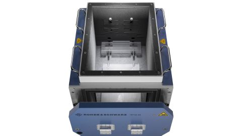 RF 테스트 박스 내부 로데슈바르즈의 R&S®TS7124 RF Test Box는 방사 측정 시 안정적 차폐와 반복 가능한 환경을 만듭니다. |