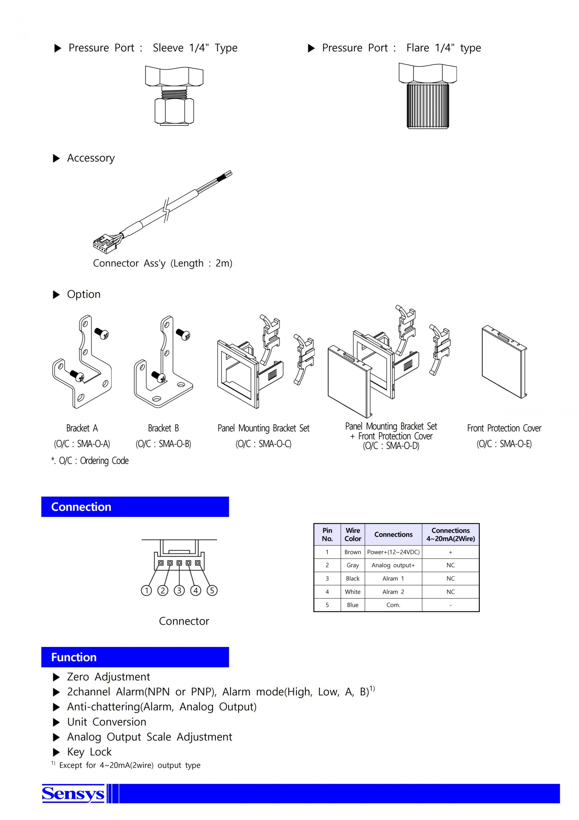 SMA(CR) 2Wire모델은 세라믹 압력셀과 테프론 압력매체접촉부로 되어 있어 내식성이 우수합니다.