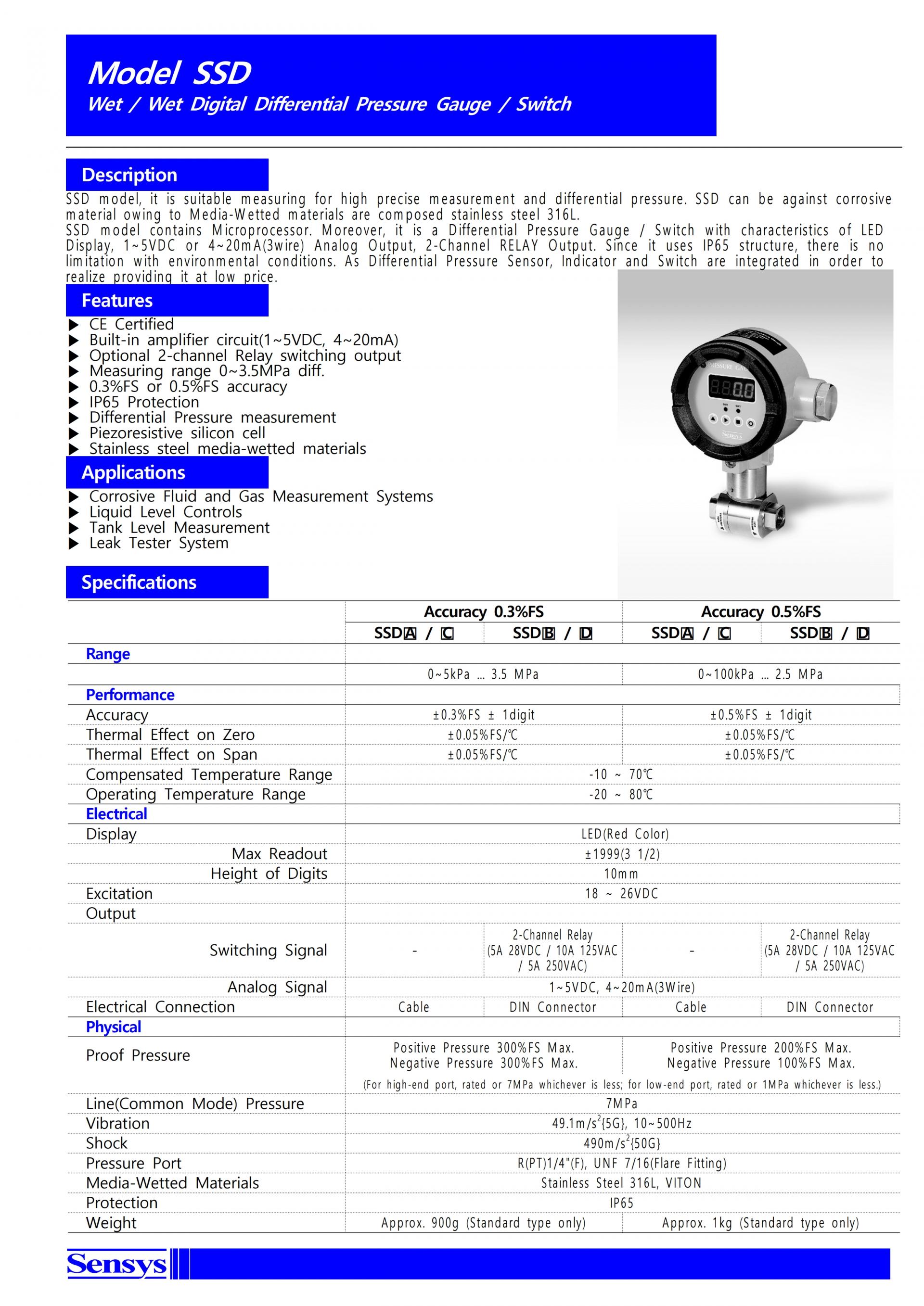 - 측정압력범위 5kPa~3.5MPa diff.