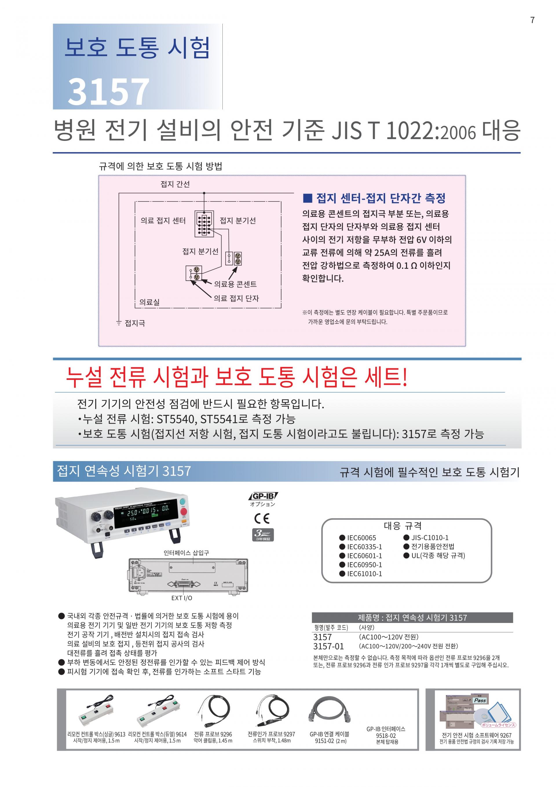 누설전류 시험과 보호 도통 시험은 세트!전기기기의 안전성 검사는 필수 항목입니다. 보호 도통 시험 (접지선 저항 시험, 접지 도통 시험이라고도 함)에는 보호 도통 시험기 3157을 사용하십시오. | ![]() |