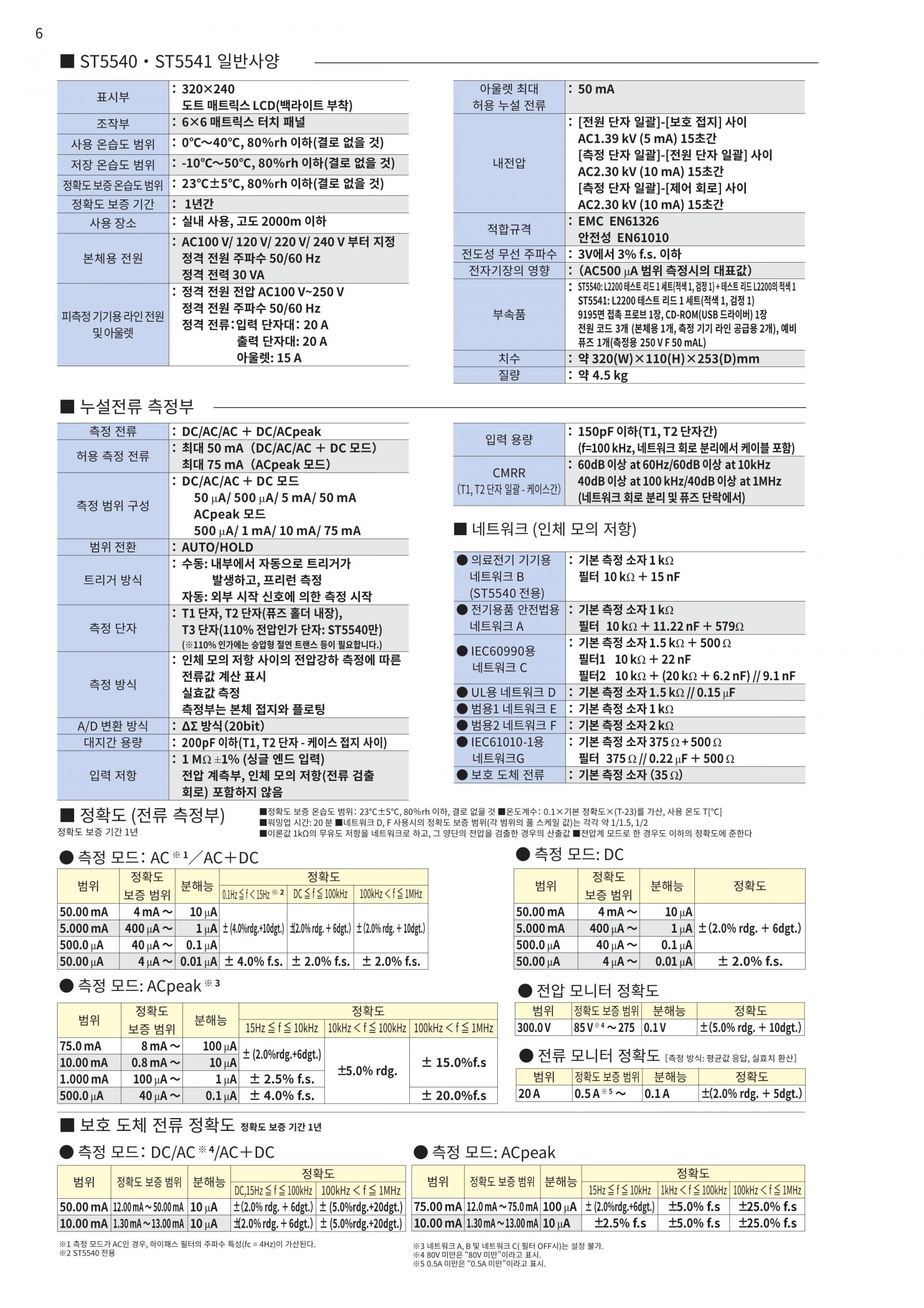 보호 도체 전류 측정 기능IEC60990, IEC60950-1등에서 규정된 보호 도체 전류 측정을 할 수 있습니다. |