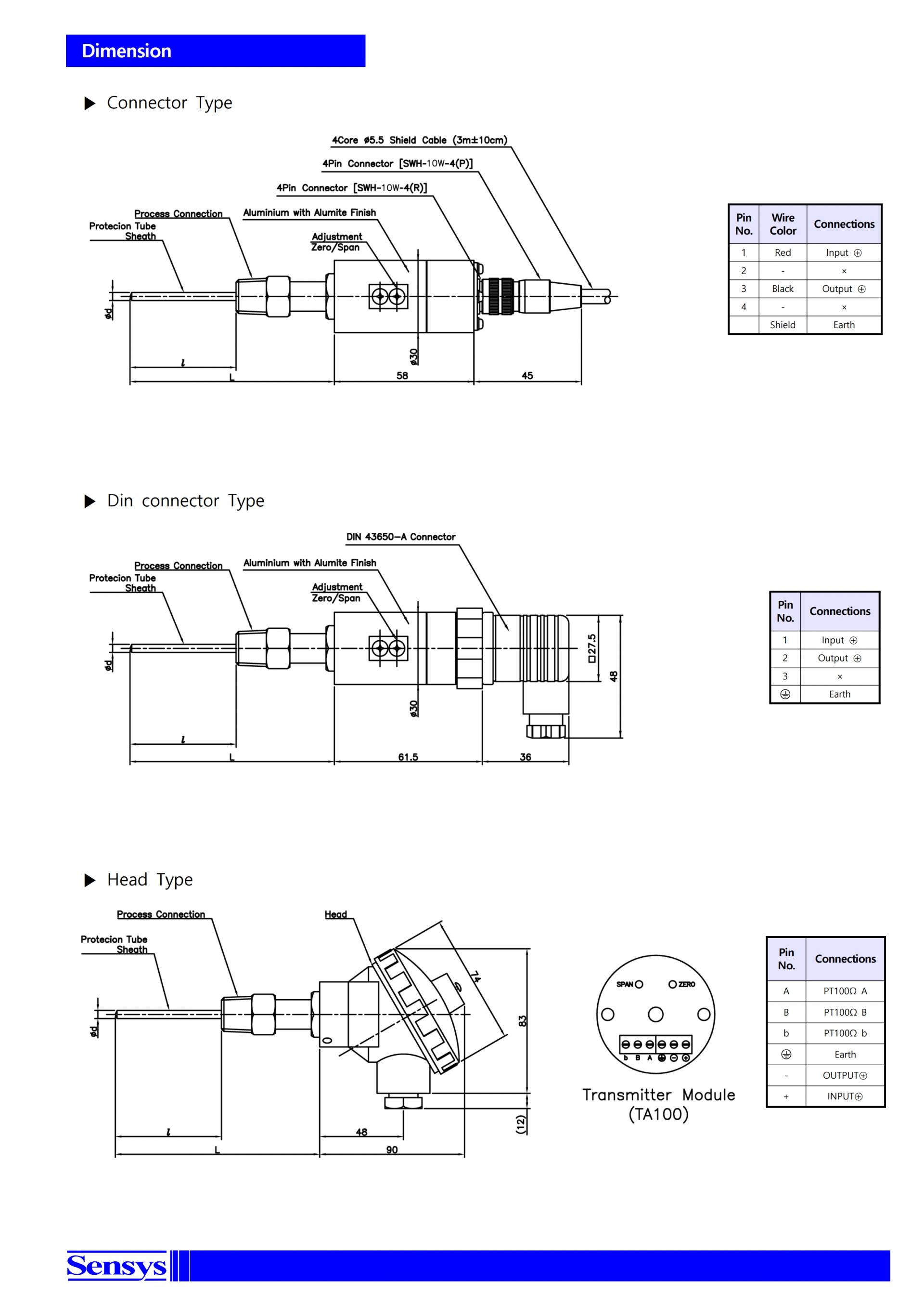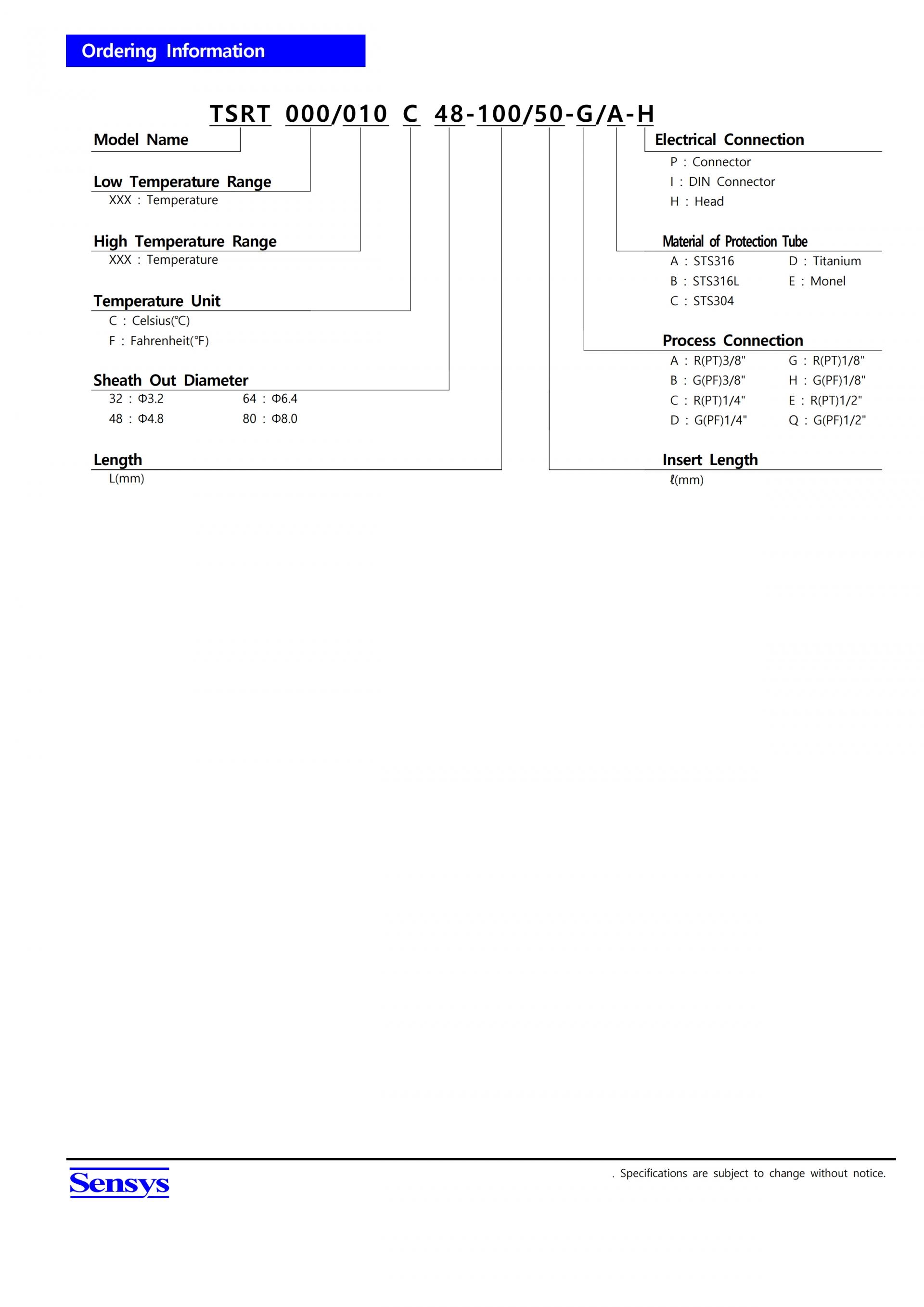 | 온도범위 감지소자 | -50 … 400℃ Sheathed RTD (PT100Ω) |