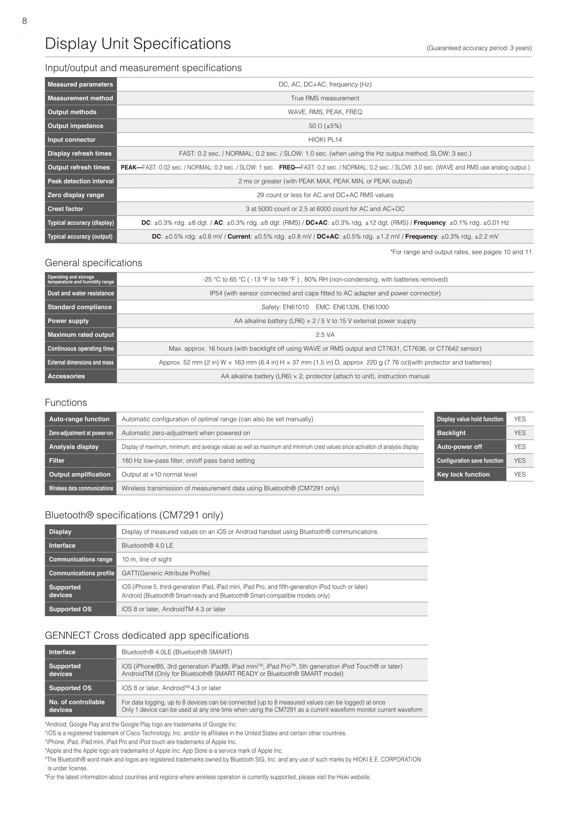 - 측정 데이터를 Bluetooth® 무선기술로 스마트 폰이나 태블릿으로 전송(CM7291)