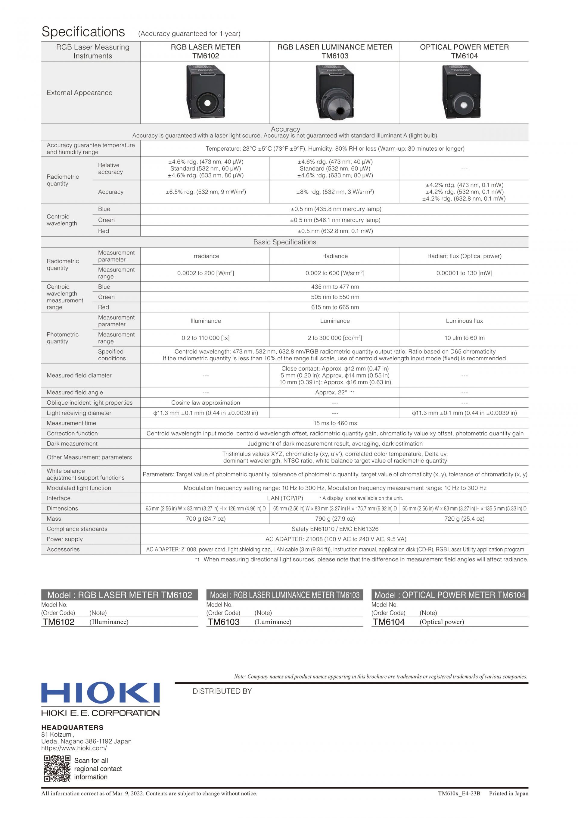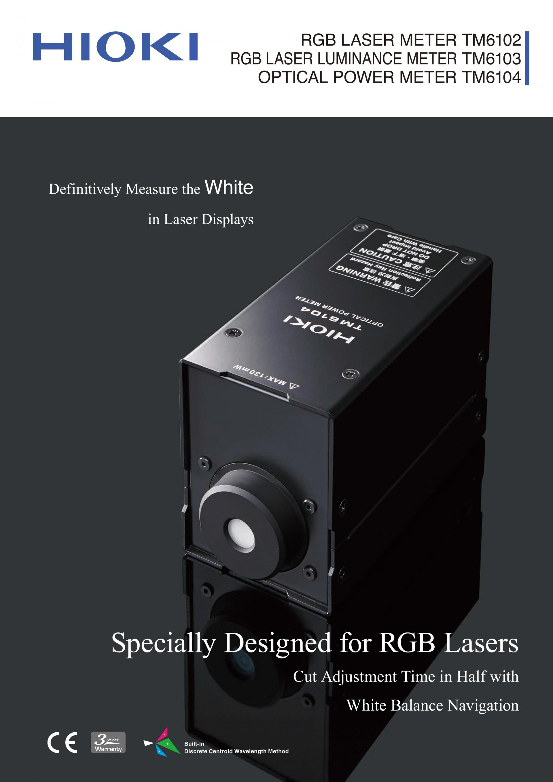 RGB 레이저 측정기 TM6102는 레이저광의 정확한 측정을 위해 개발된 새로운 방식 "분리중심 파장방식"을 최초로 채택한 조도계입니다. 또한, 출하시의 화이트 밸런스 조정 공수를 절반으로 줄이는 "화이트 밸런스 조정 보조 기능"을 표준 탑재해 RGB 각각의 광원을 조정하는 것만으로 원하는 "White"를 간단하게 만들어 낼 수 있습니다. HUD(헤드업 디스플레이)나 광색역 디스플레이와 같은 레이저 광원을 이용한 차세대 디스플레이의 정확한 측색을 위해서 만들어진 RGB 레이저 전용 광측정기입니다. 측정항목 | ![]() |