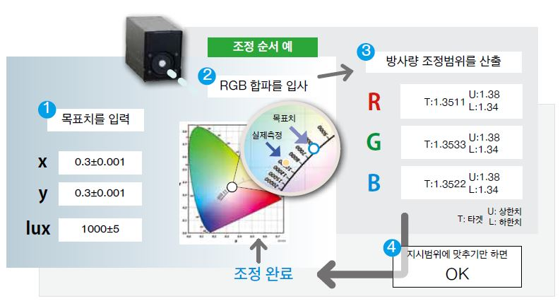 RGB 레이저 전용 생산라인 구축에 최적인 소형 조도계
