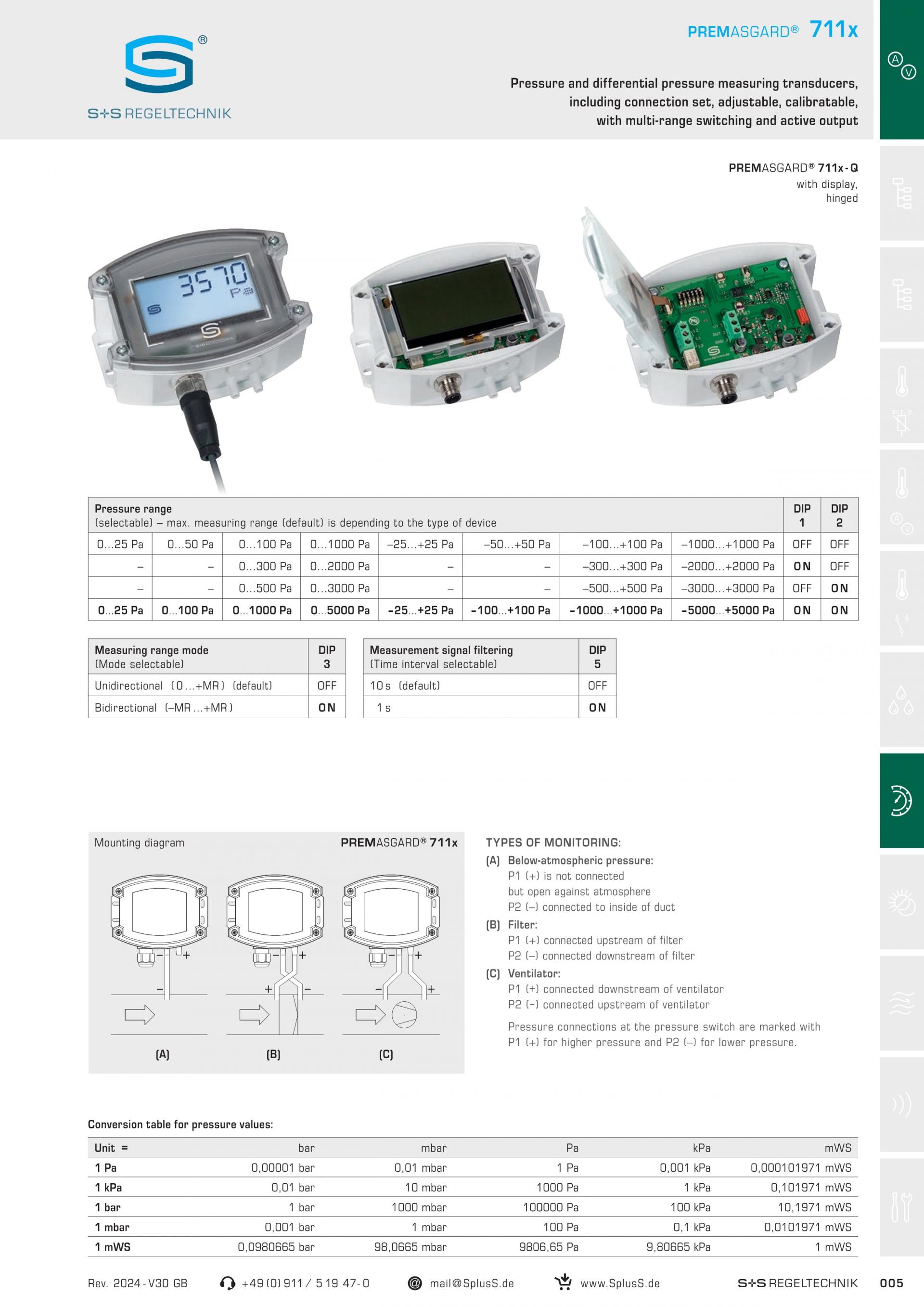 S+S 7110-I Pressure and differential pressure measuring transducer