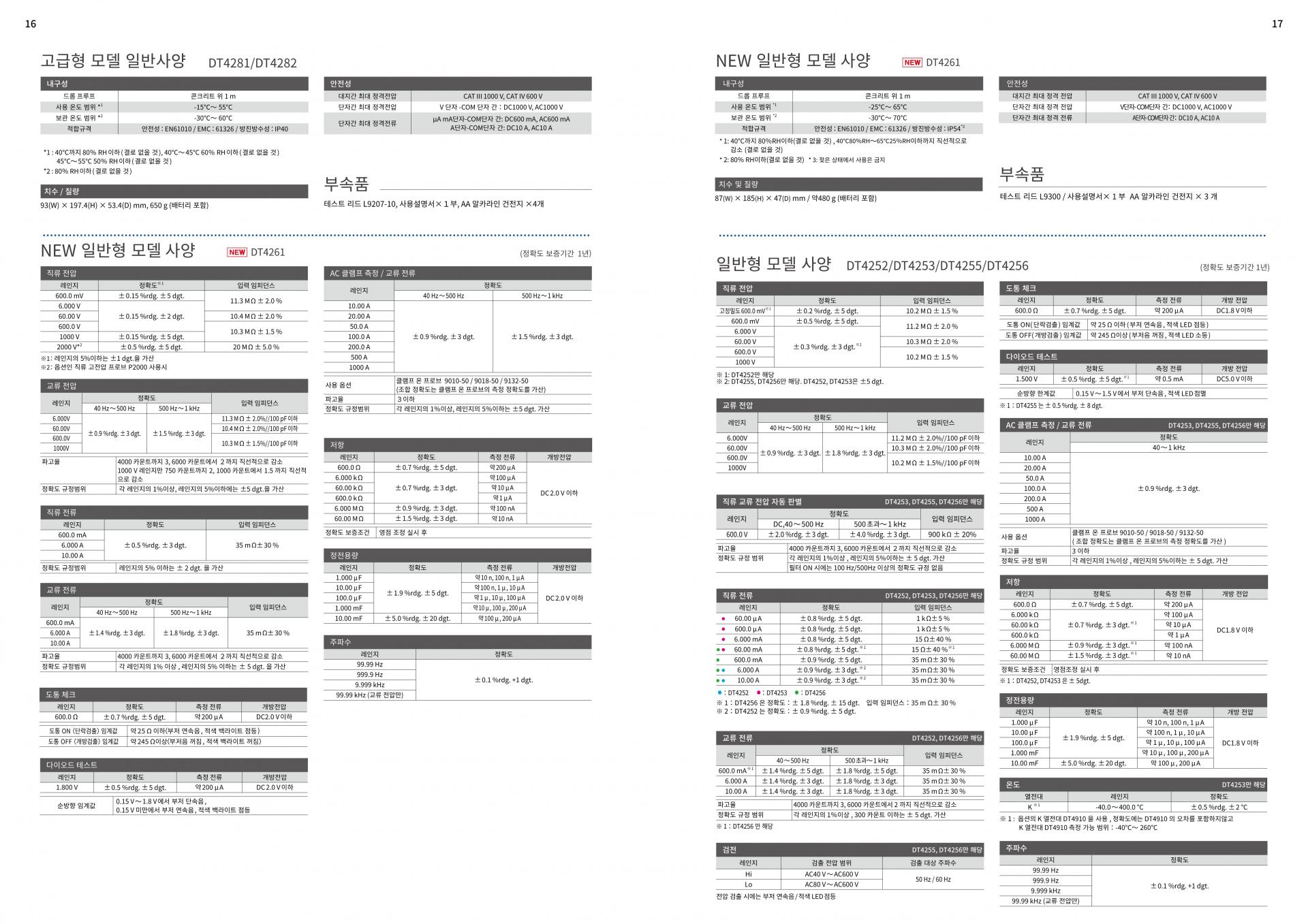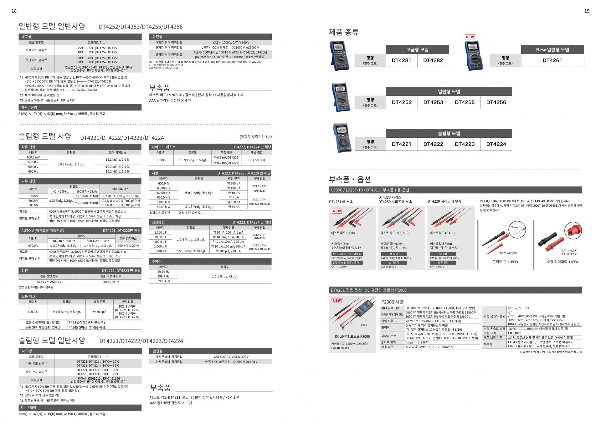 직류 1700V까지 측정 가능한 고전압 측정 디지털 멀티 미터각 기종이 사용 용도에 맞게 설계된 "표준 모델 DT4250 시리즈“