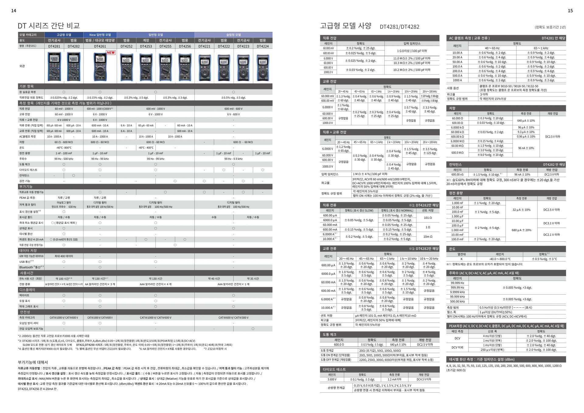 - 전압 측정 기능만을 탑재, PV, 전력 설비의 유지보수에 최적화, 솔라 패널의 개방 전압 점검에 DC1700V까지 측정 가능(※1) (DT4254)