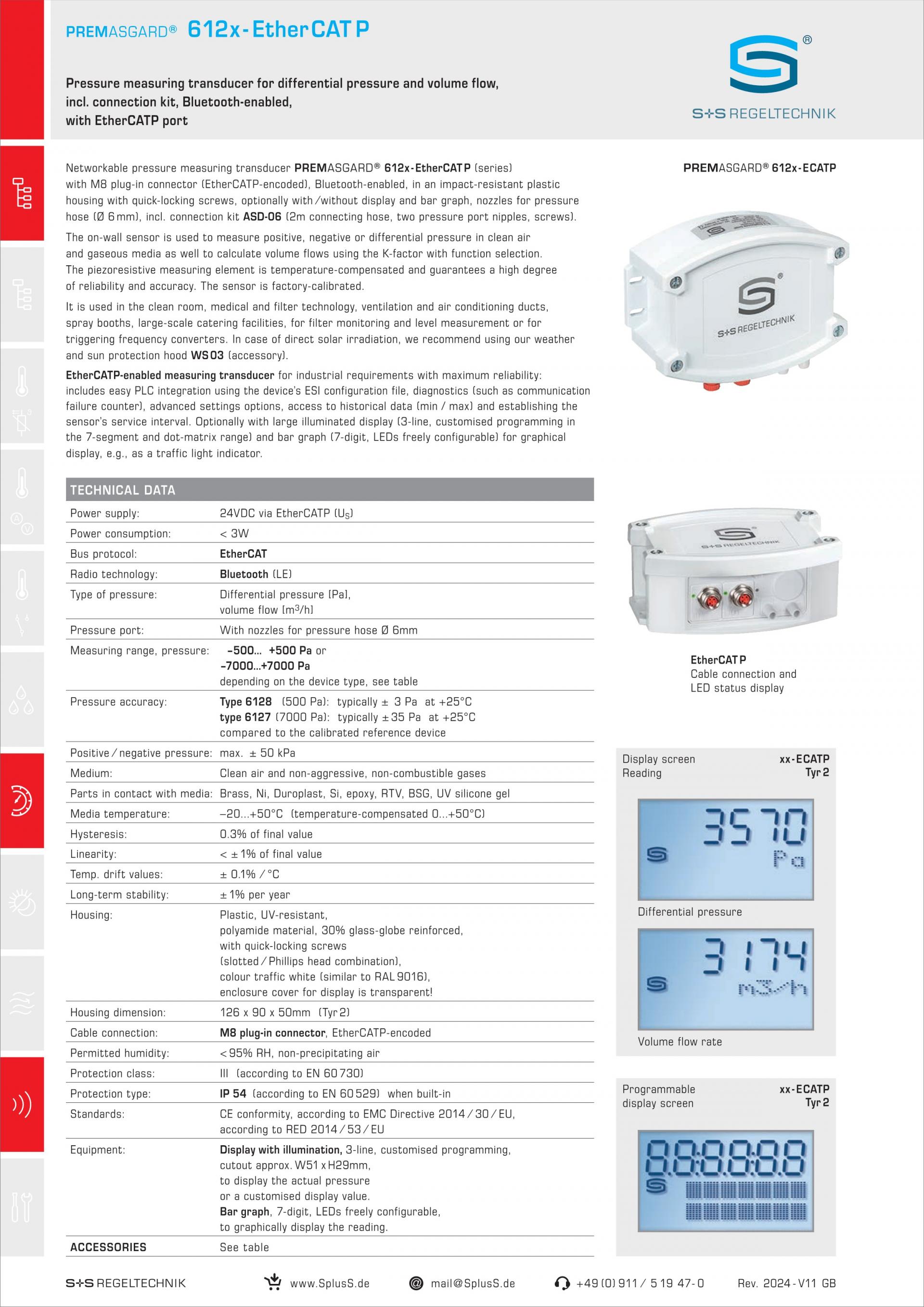 S+S 6127-ECATP Pressure measuring transducer for differential pressure and volume flow