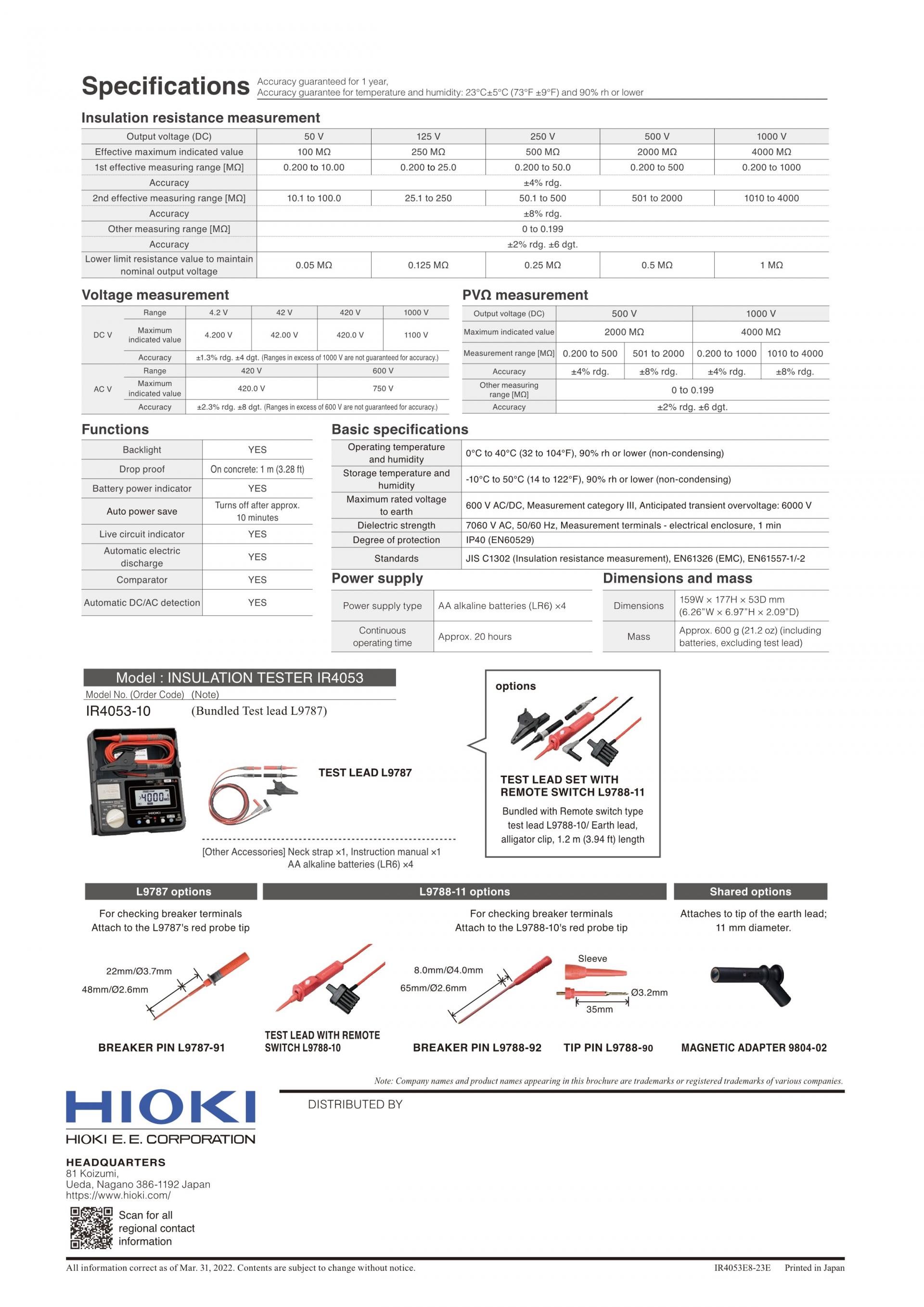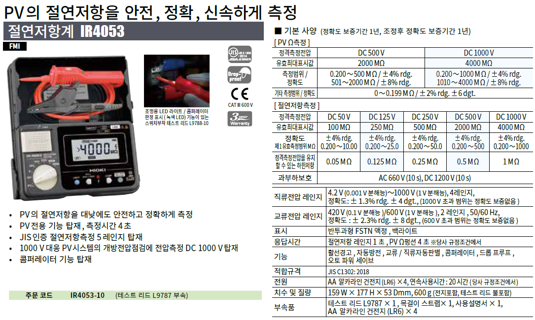 | IR4053-10 | 테스트 리드 L9787 포함 |