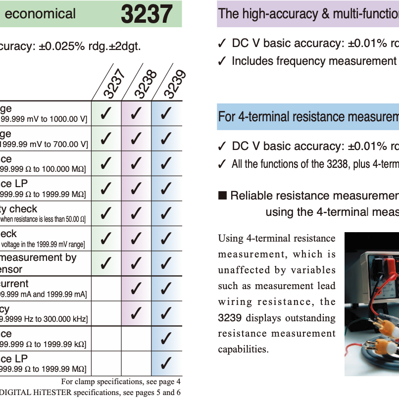 - 모델 3238에 정확한 저항측정이 가능한 4 단자 측정기능을 더한 다기능 고정확도 모델