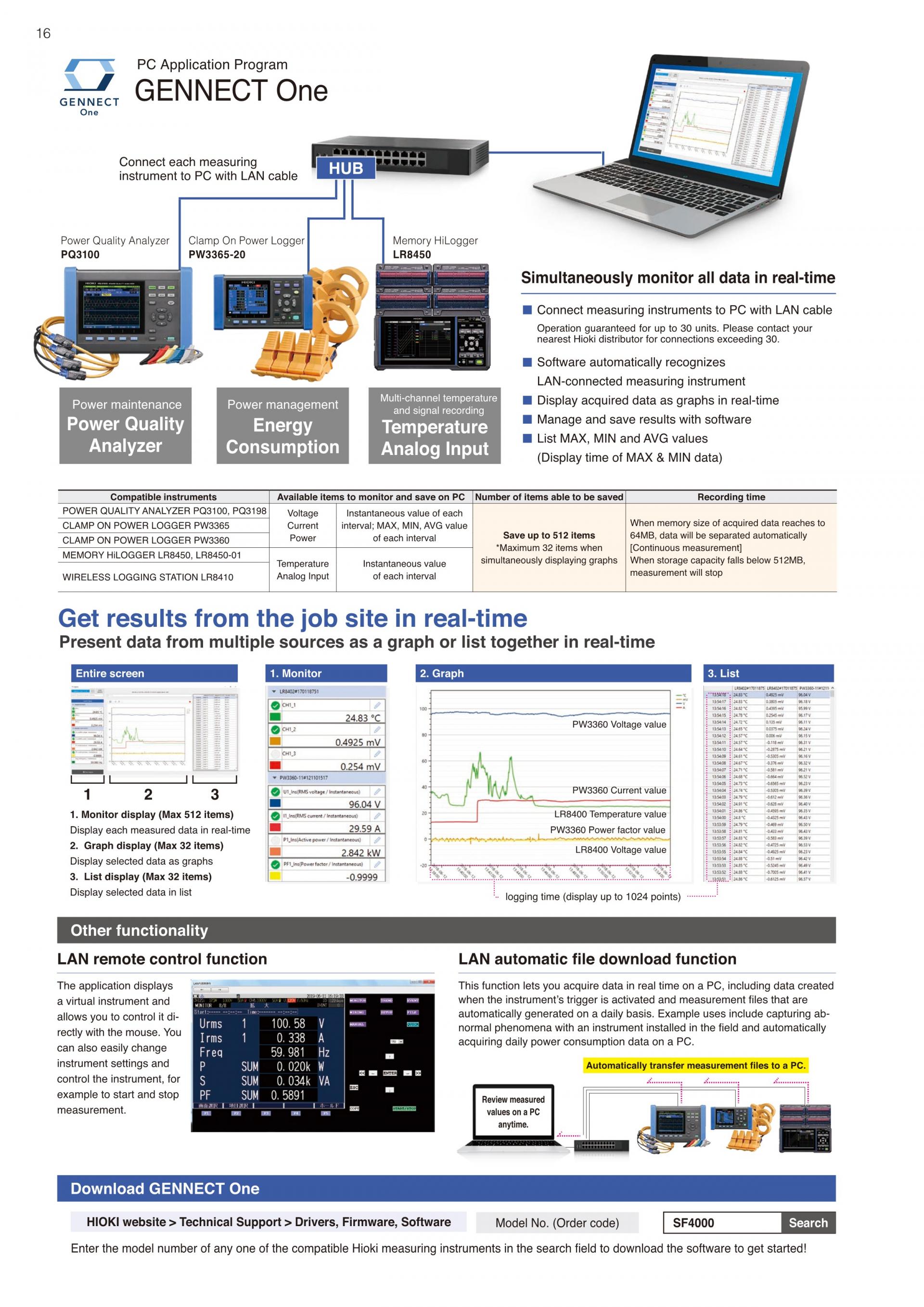 전원 품질을 원격 감시 [GENNECT One SF4000]측정하면서 데이터를 PC에 실시간으로 일괄 표시, 저장 https://gennect.net/en/one/index | ![]() |