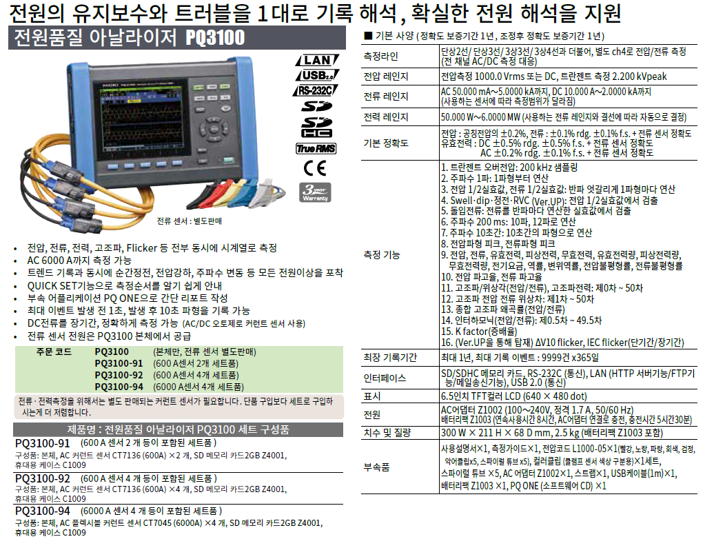 | PQ3100 | 본체만, 클램프 센서는 별도판매 |