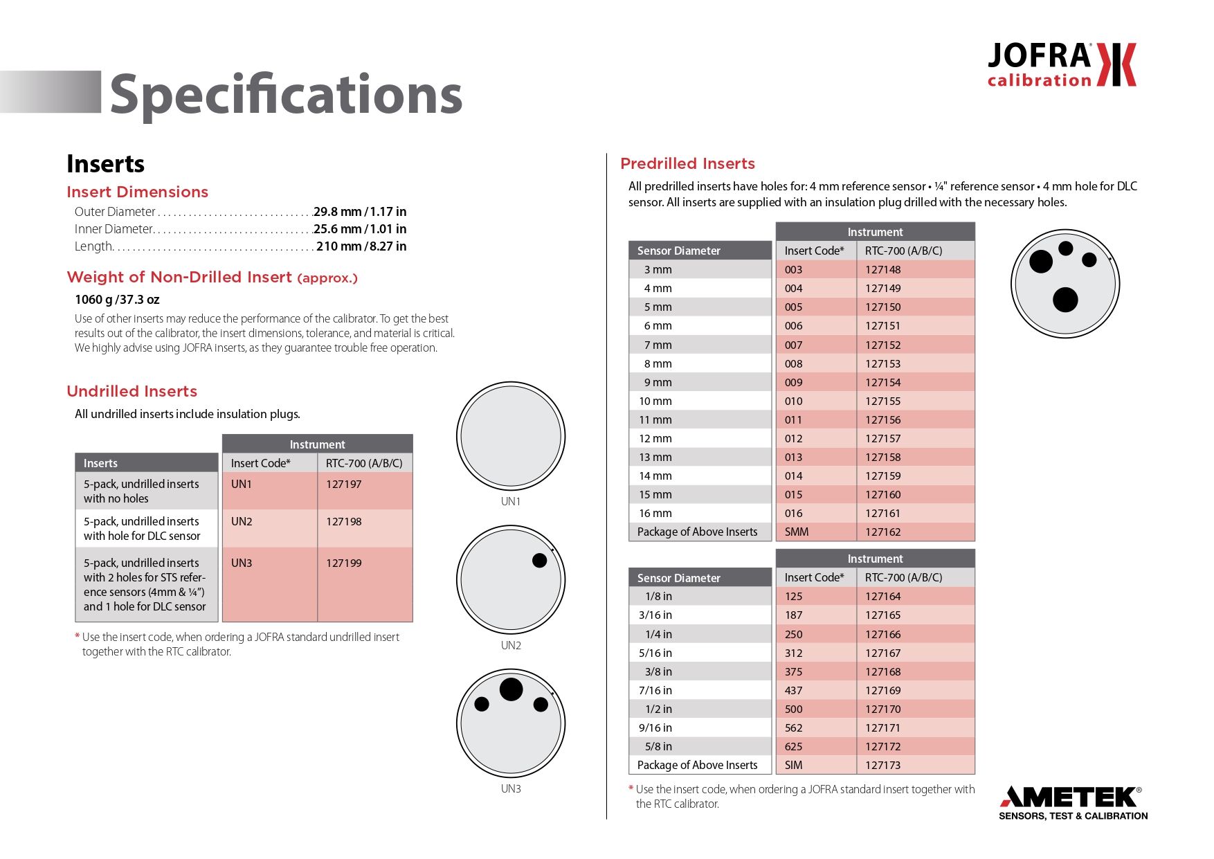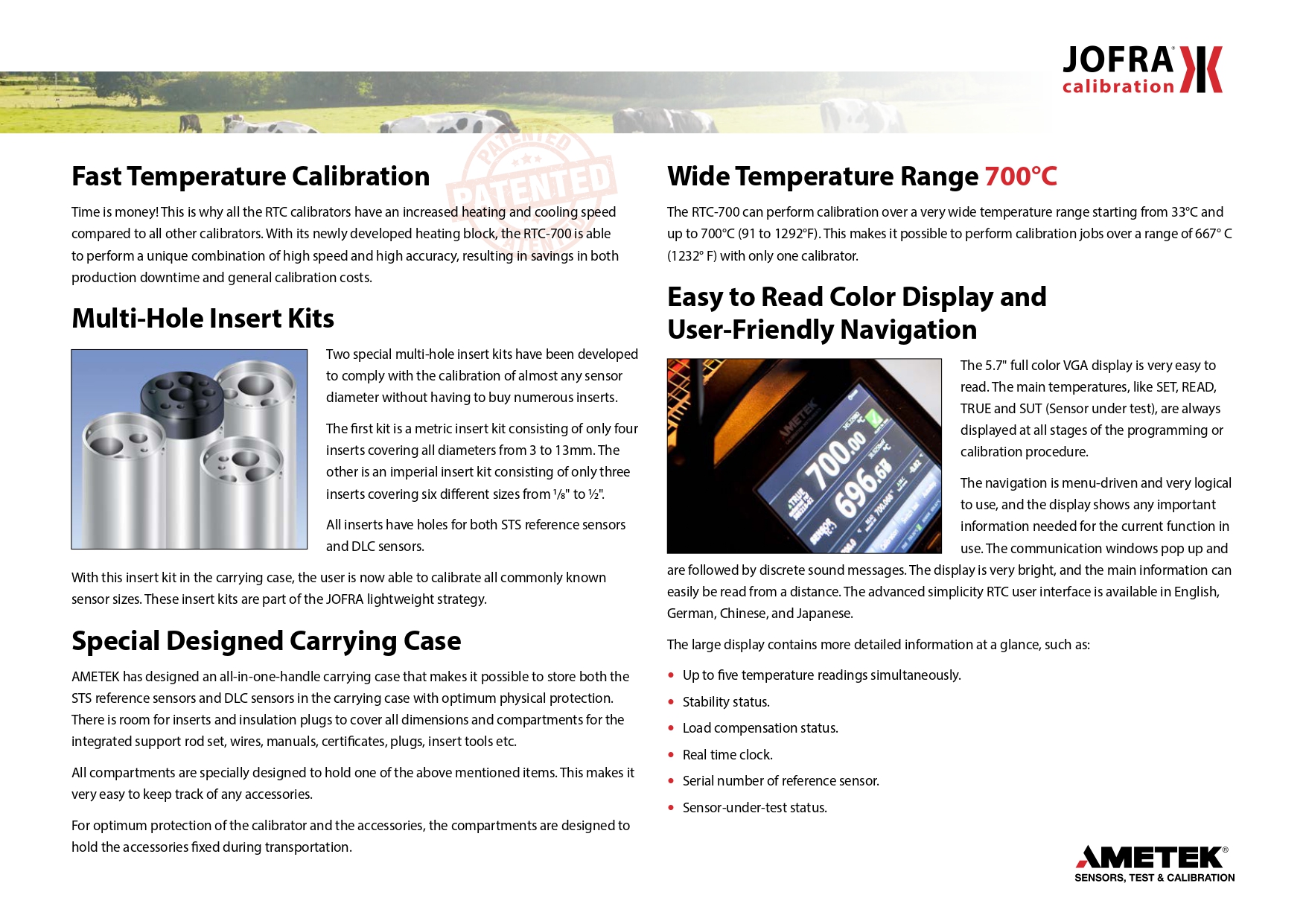 AMETEK RTC-700B 드라이블럭 (700℃) 센서 및 참조입력 포함