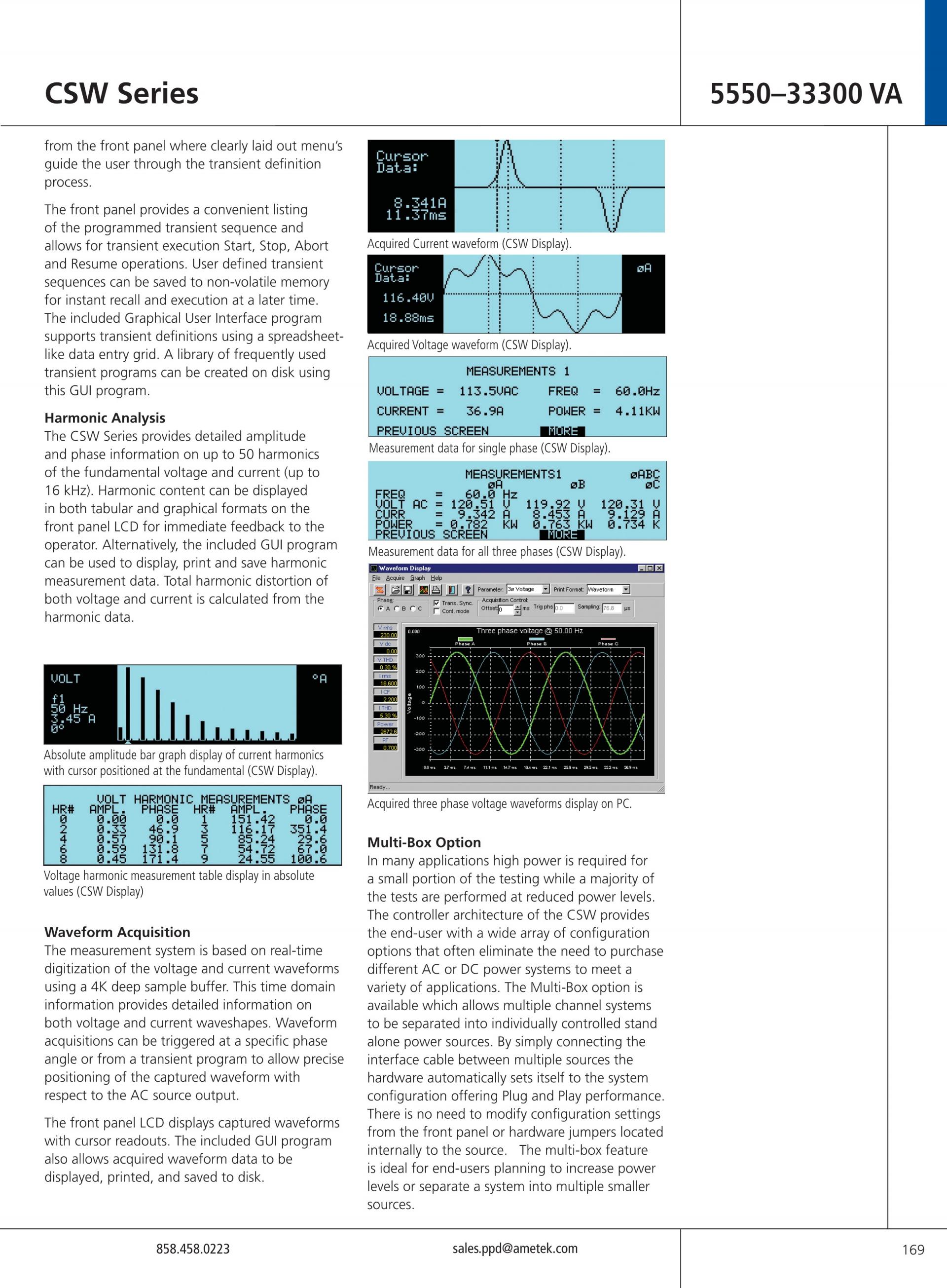 The CSW Series represents a new generation of AC/DC power sources that address the increasing demands on test equipment to perform additional functions at a lower cost. By combining a flexible AC/DC power source with a high performance power analyzer, the Compact CSW Series is capable of handling complex applications that have traditionally required multiple systems. The sleek integrated approach of the CSW avoids cable clutter that is commonly found in test systems. All connections are made internally and the need for digital multimeters, power harmonics analyzers, and current shunts or clamps is eliminated.