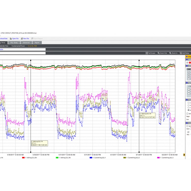 - 포괄적인 로깅: 장비에 20개가 넘는 별도의 로깅 세션을 저장할 수 있습니다. 종합적인 전력 및 전력 품질 변수 범위가 자동으로 기록되므로 측정 추이를 놓칠 일이 없습니다.