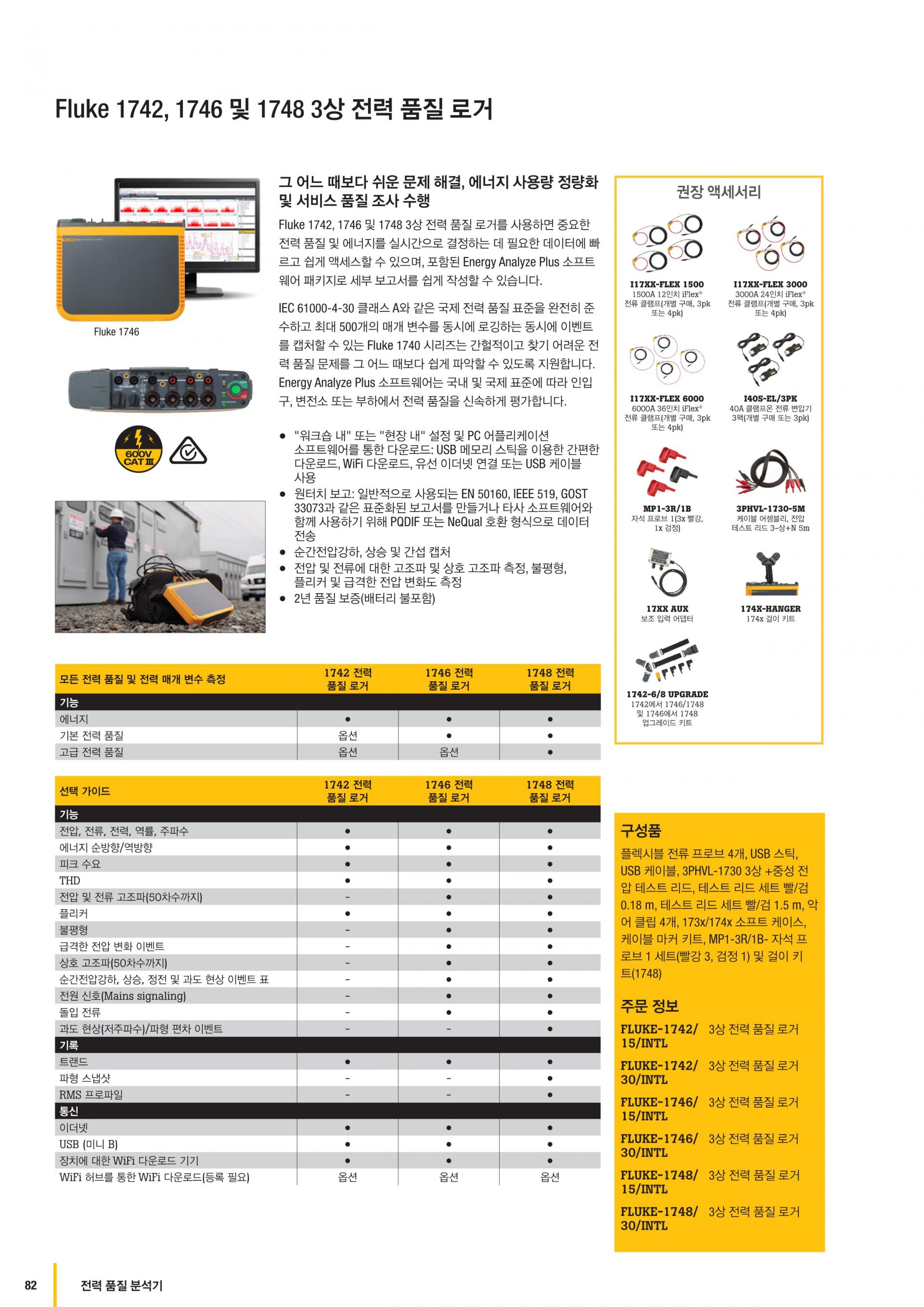 제품 개요: Fluke 1742, 1746, 1748 3상 전력 품질 로거