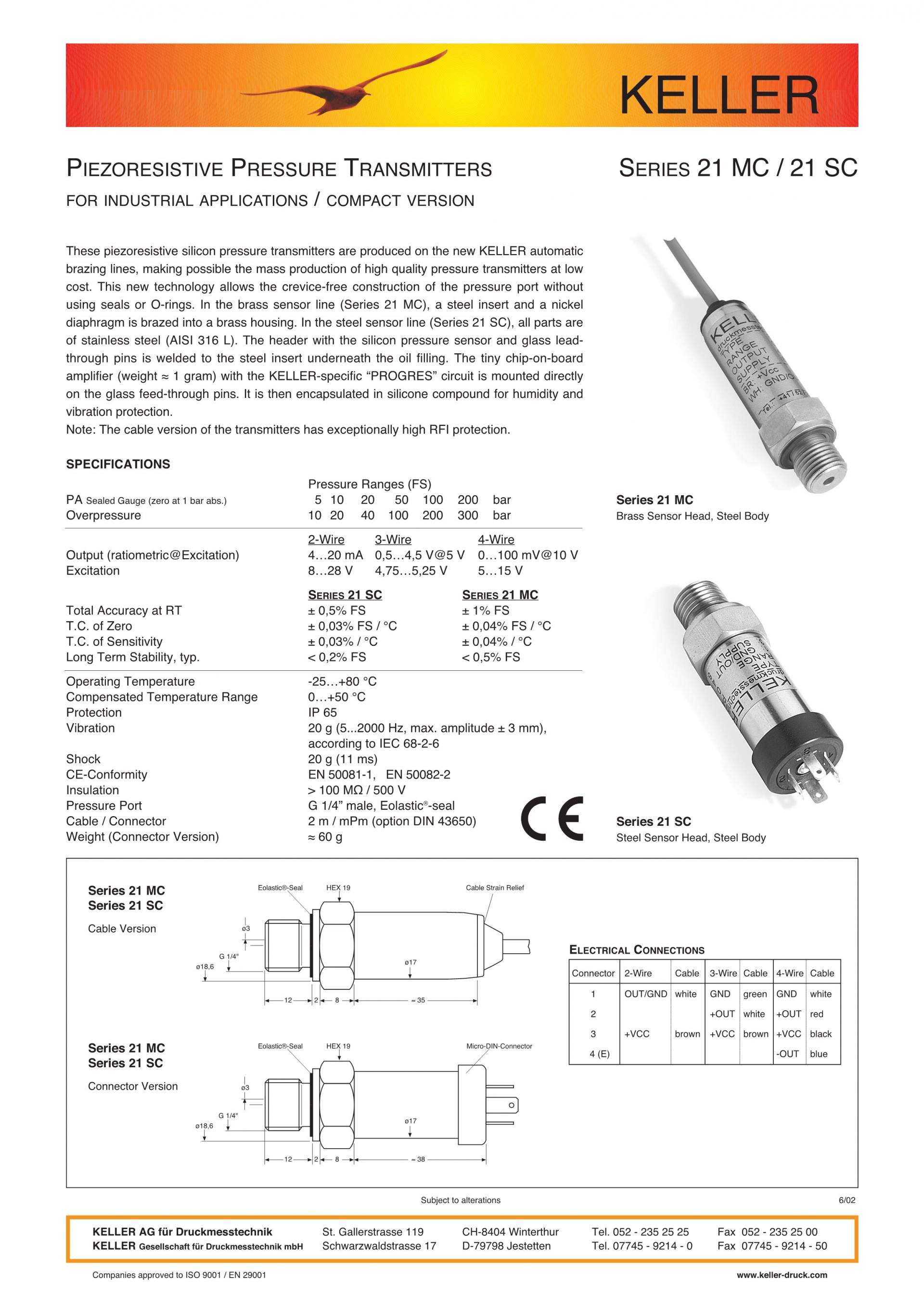 21SC PIEZORESISTIVE PRESSURE TRANSMITTERS FOR INDUSTRIAL APPLICATIONS / COMPACT VERSION