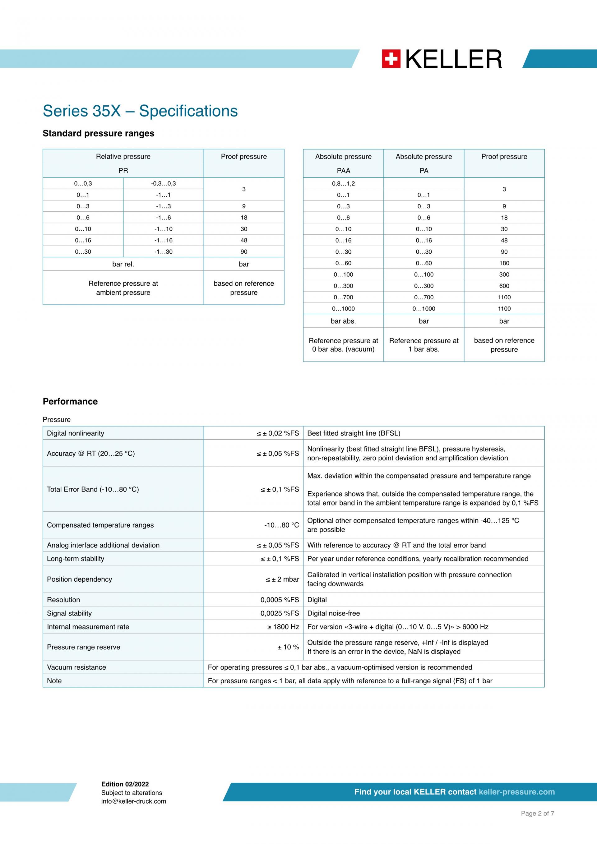 35X Piezoresistive pressure transmitters with front-flush metal diaphragm and excellent accuracy