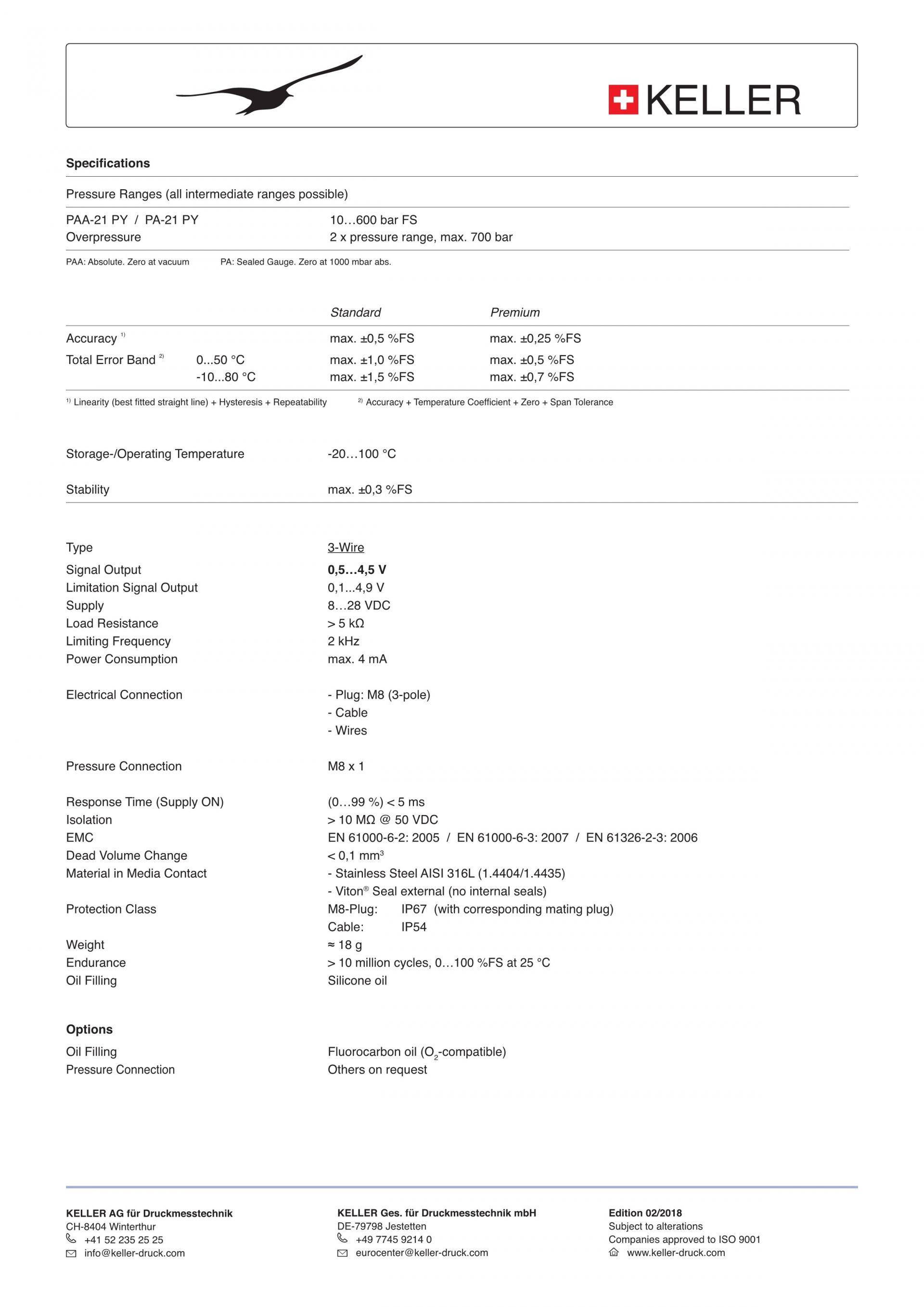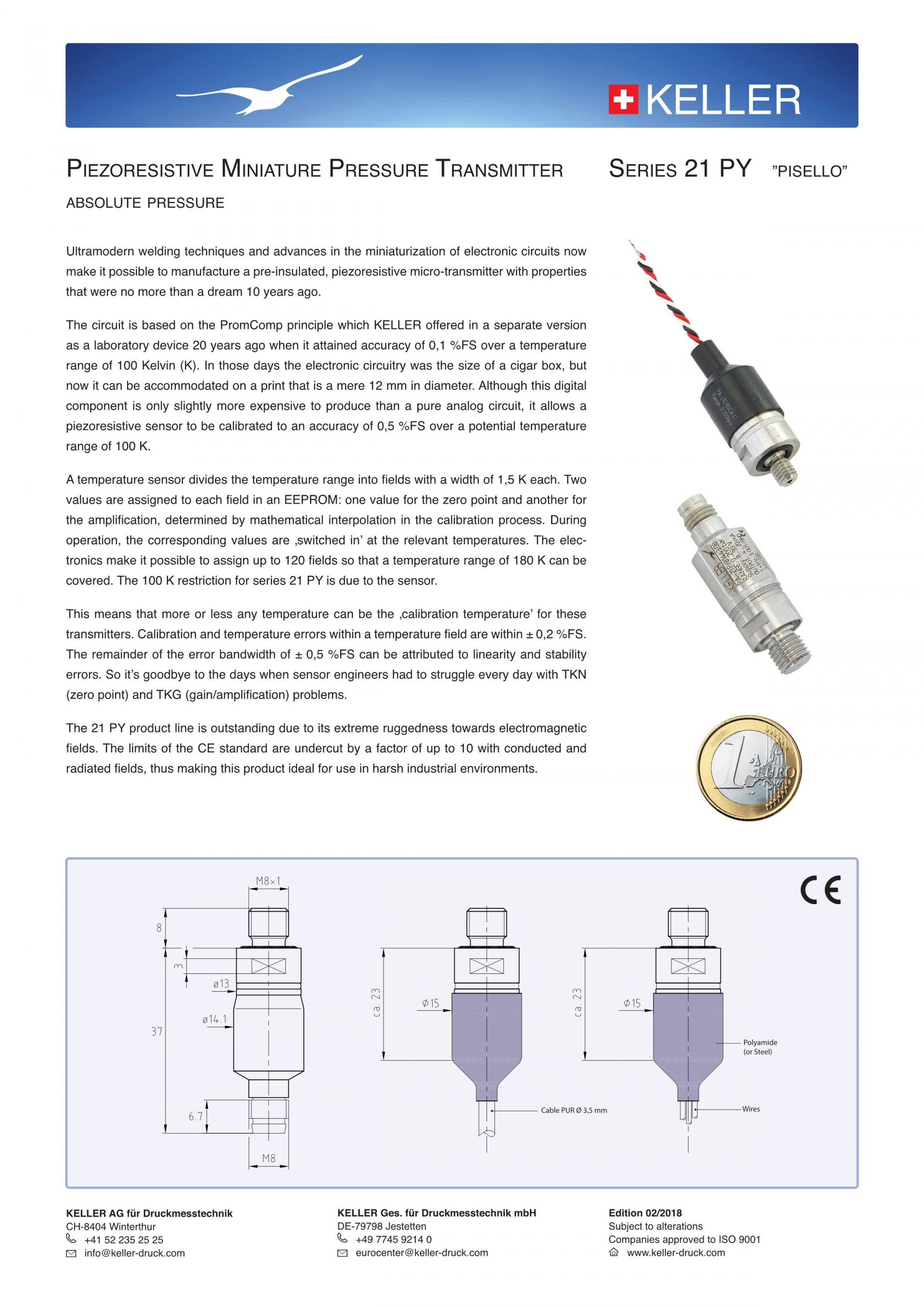 이 회로는 PromComp 원리에 기반을 두고 있는데, 이는 KELLER가 20 년 전에 100K의 온도 범위에서 0.1 % FS의 정확도 개발에 성공하였을 당시 별도의 실험실 장치로서 사용하였던 원리와 같습니다. 당시 전자 회로는 담배갑 정도의 사이즈였으나, 지금은 12mm의 사이즈까지 소형화 되었습니다.