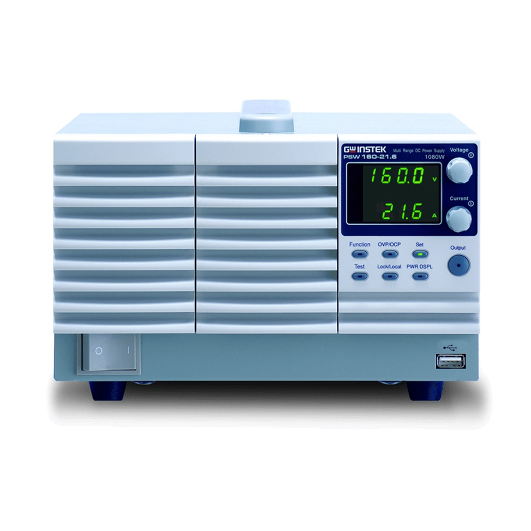 The PSW-Series is a single-output multi-range programmable switching DC Power Supply covering a power range up to 1080W. This series of products include fifteen models with the combination of 30V, 80V, 160V, 250V, and 800V rated voltages and 360W, 720W and 1080W maximum output powers. The multi-range feature allows the flexible and efficient configuration of voltage and current within the rated power range.