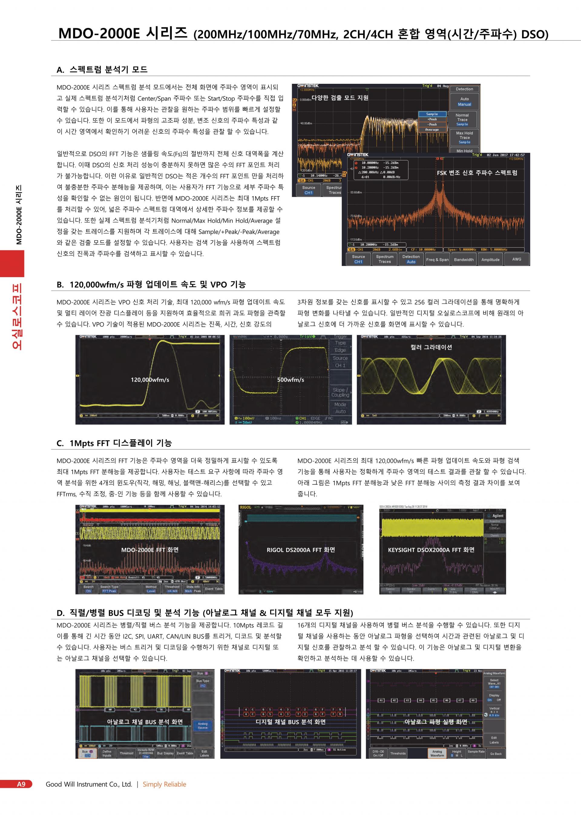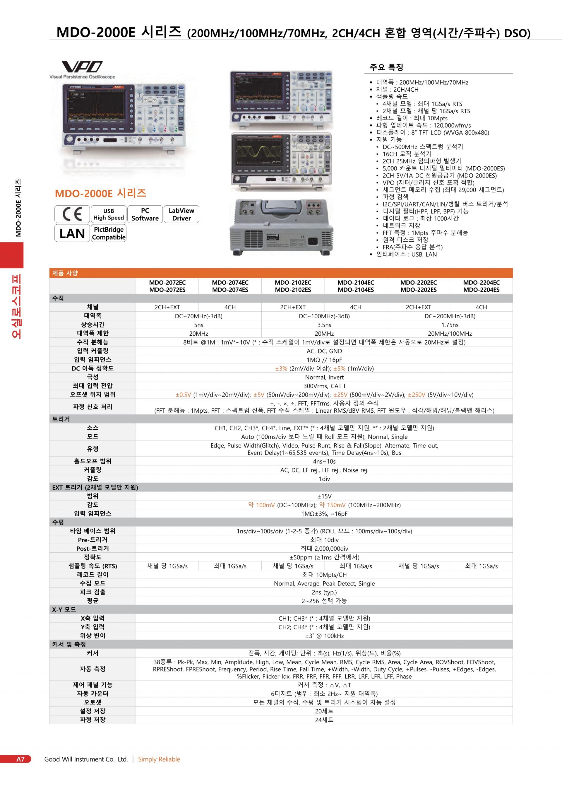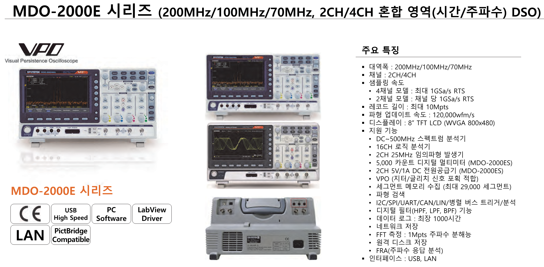 - 200/100/70MHz 대역폭 선택 ; 2 또는 4 채널