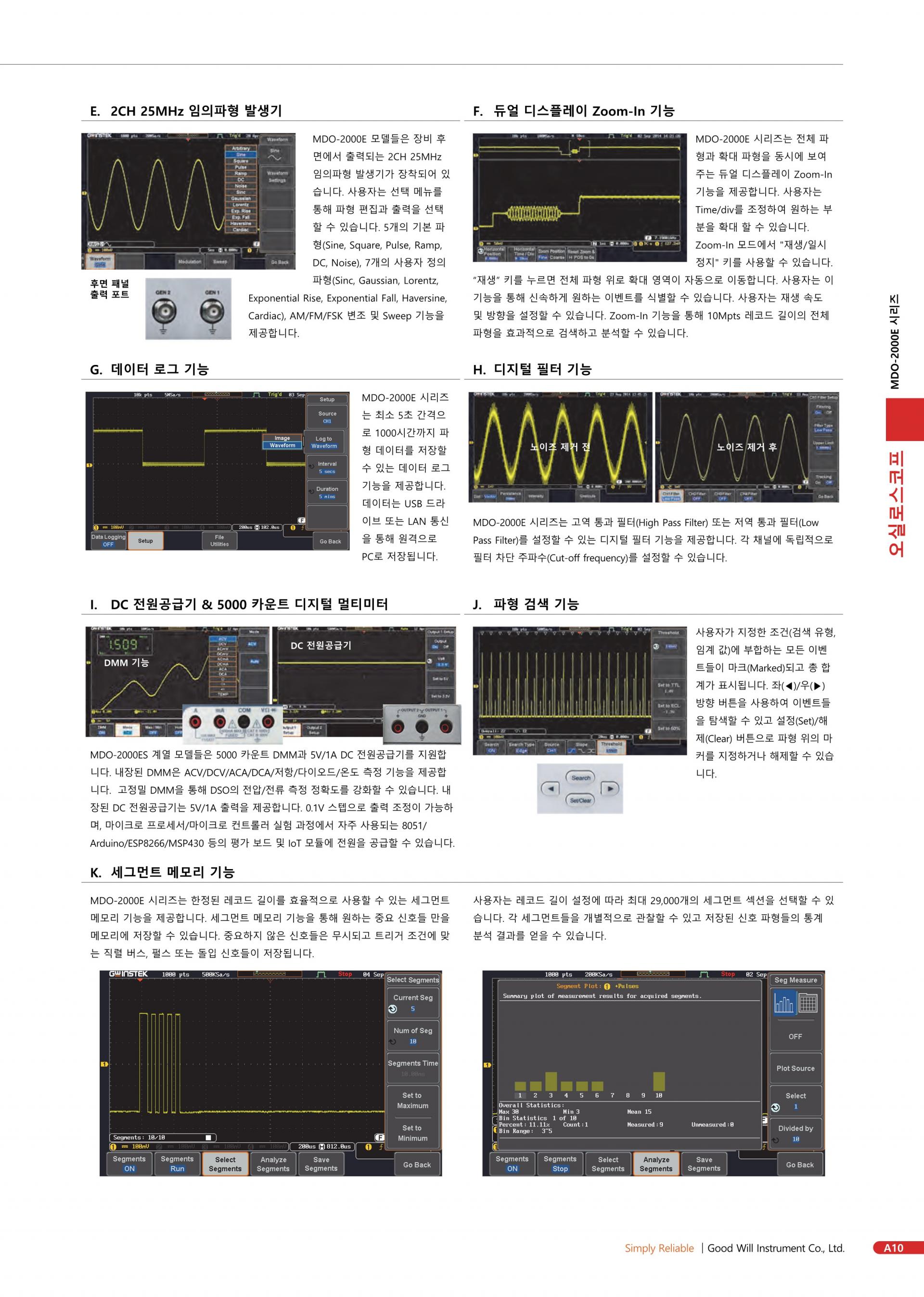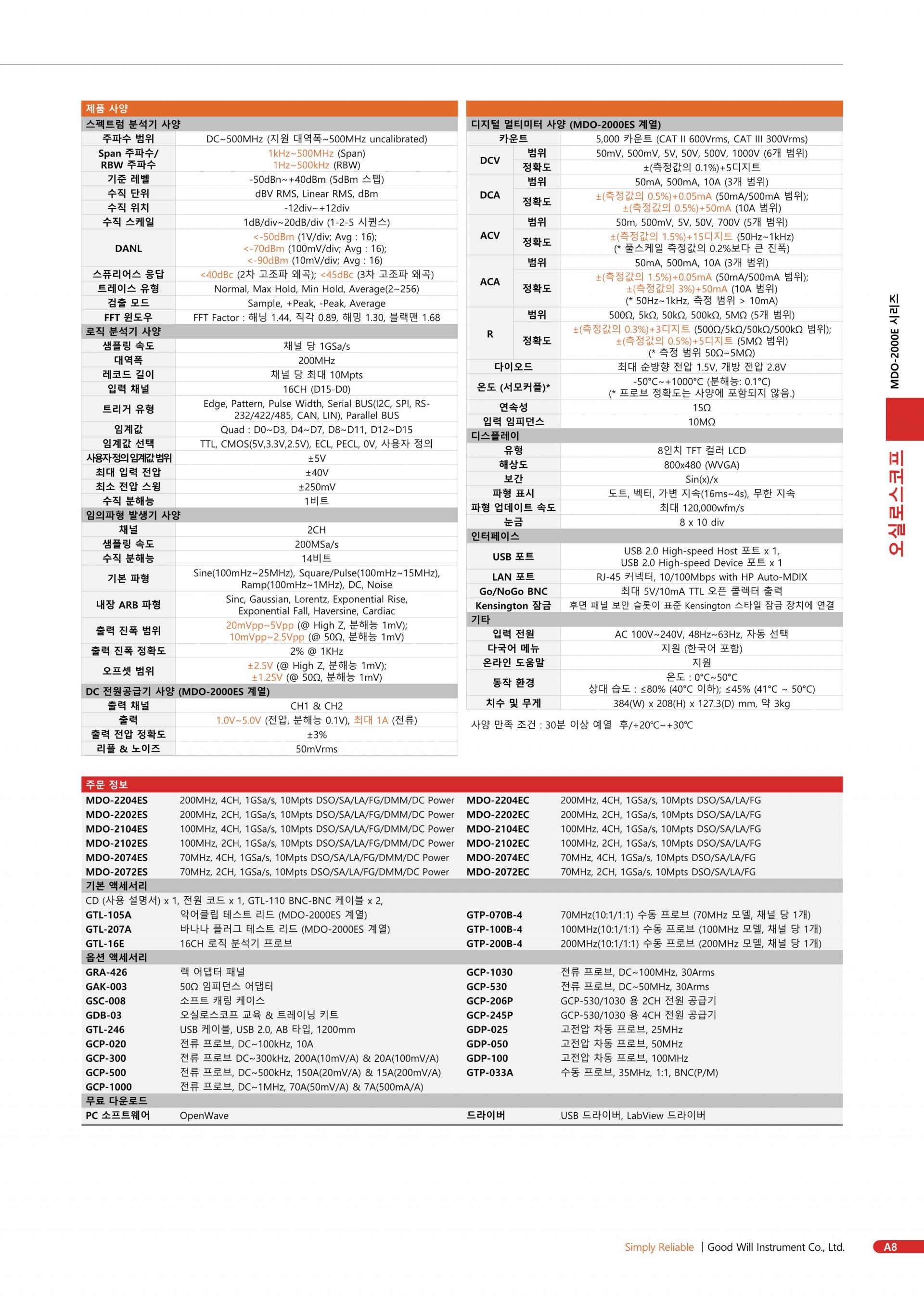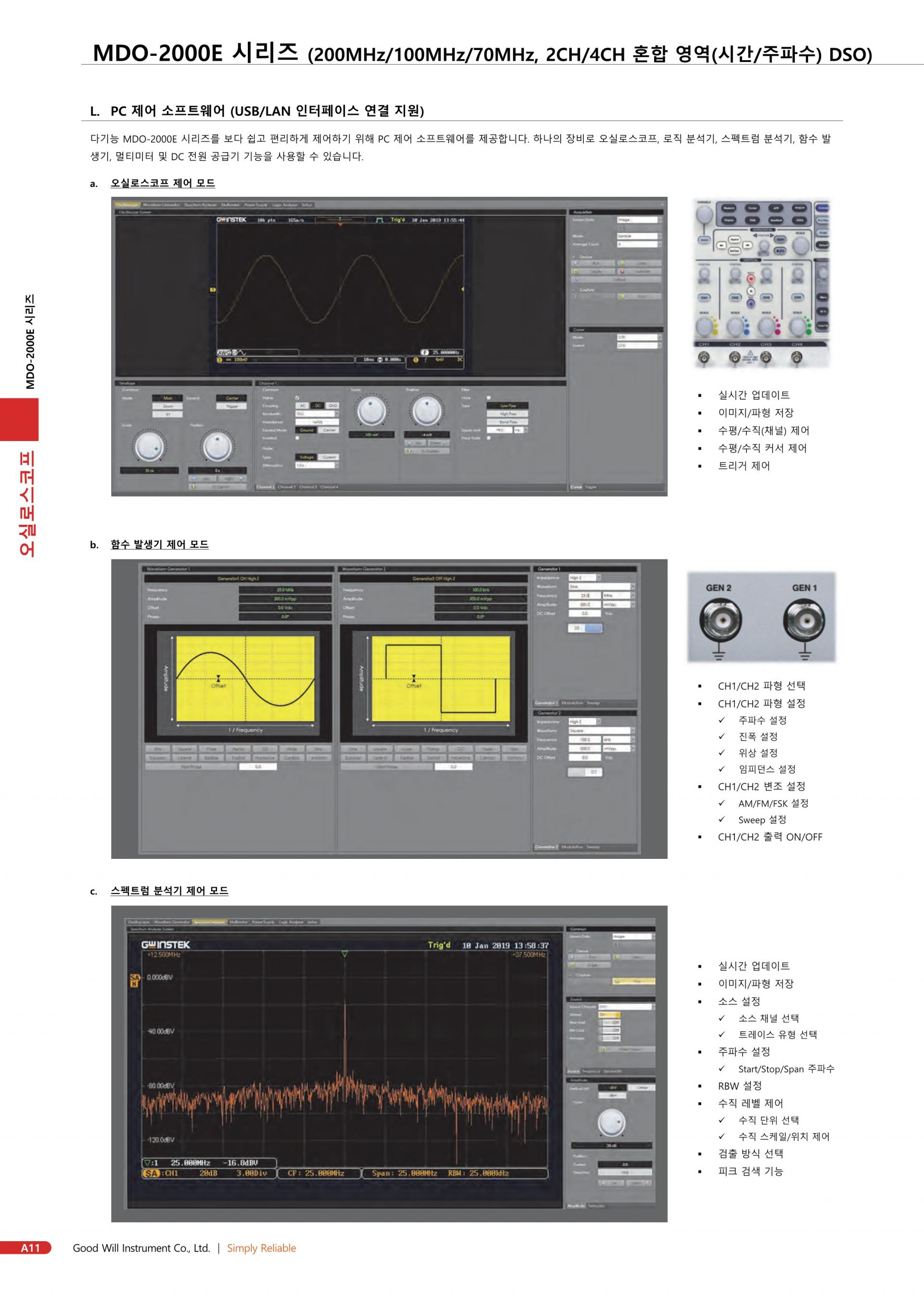 - 200/100/70MHz 대역폭 선택 ; 2 또는 4 채널