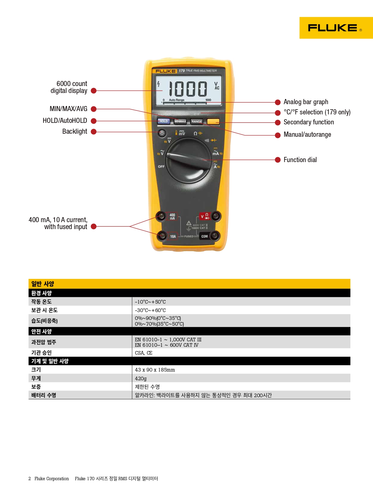 제품 사양: Fluke 175 True-RMS 디지털 멀티미터