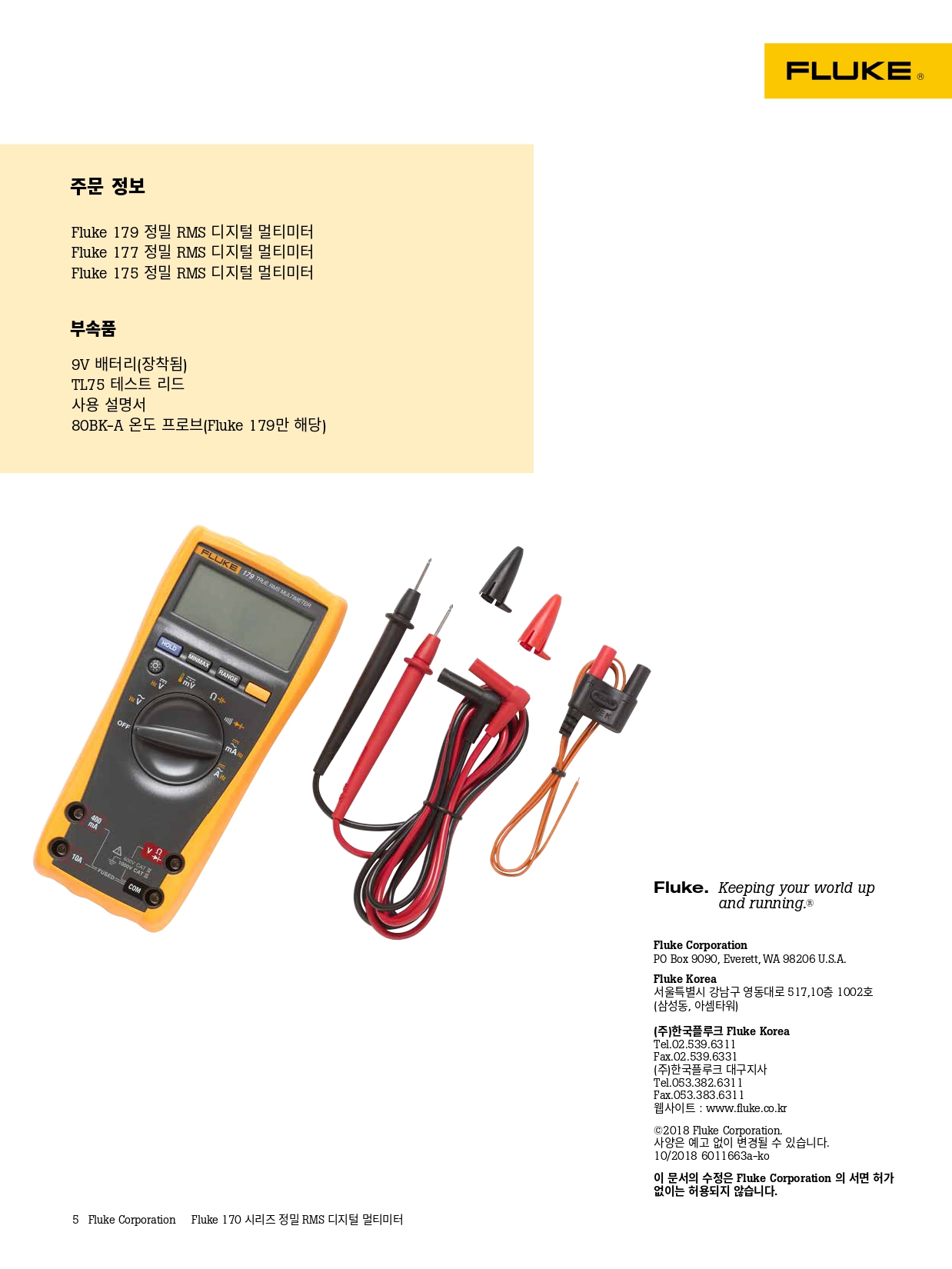 Fluke 170 시리즈는 다음 모델로 구성됩니다.