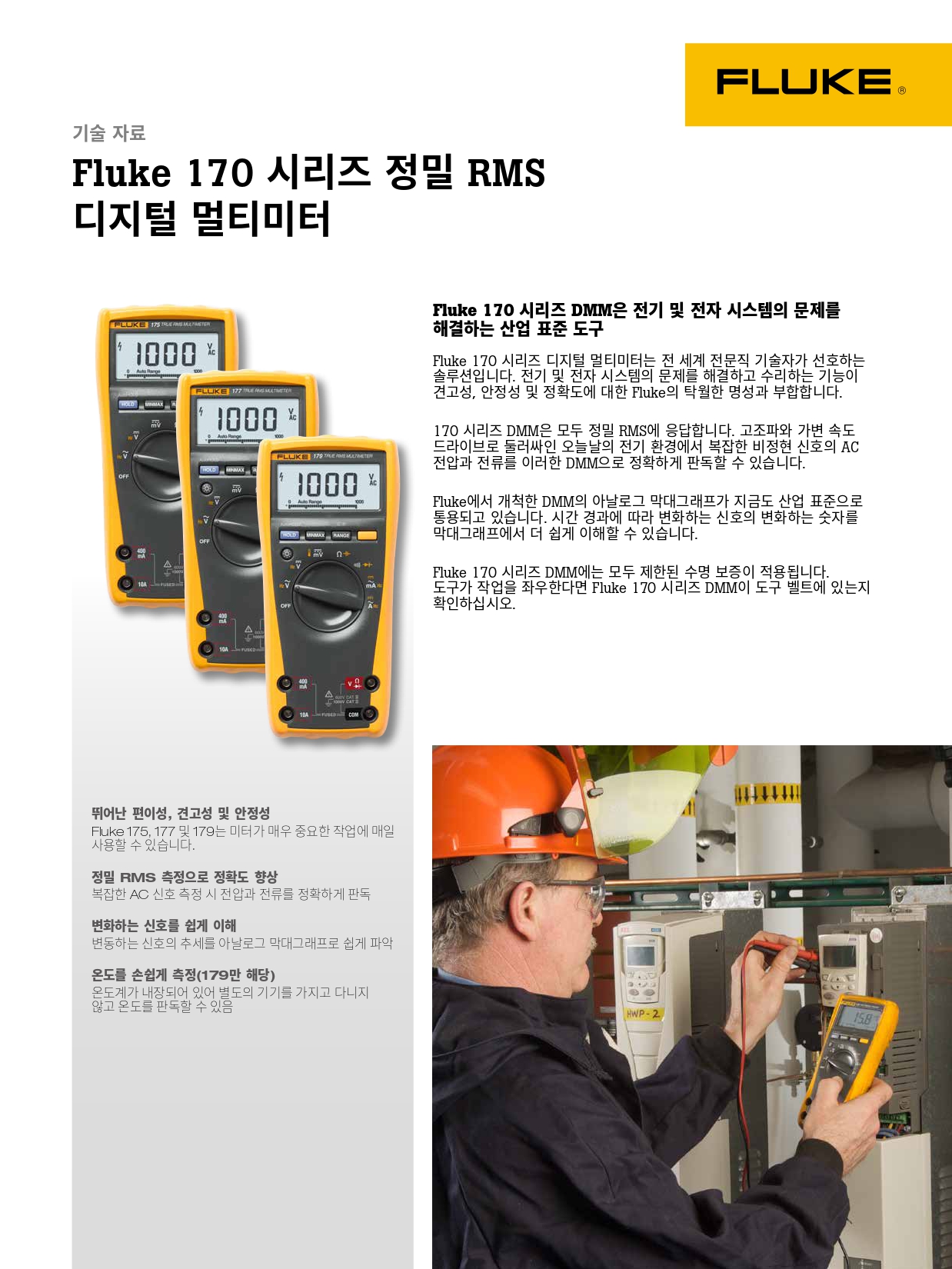 전 세계의 전문 기술자들이 선호하는 한 가지 솔루션: Fluke 170 시리즈 실제 RMS 디지털 멀티미터의 정밀도, 안정성 및 사용 편의성을 원합니다. 전기 및 전자 시스템의 많은 문제를 해결하고 수리하는 데 필요한 모든 기능을 갖춘 산업 표준입니다.