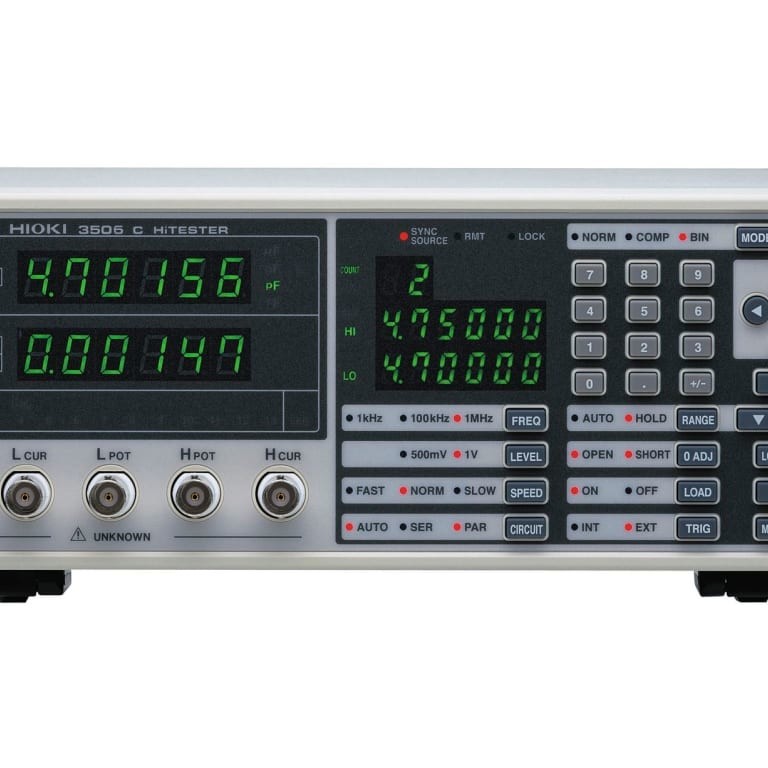 적층 세라믹 콘덴서의 정전압 측정을 할 수 있는 C(정전용량) 측정기측정 주파수 120 Hz와 1 kHz인 C 미터입니다. 대용량의 적층 세라믹 콘덴서를 정전압으로 고속 및 고정밀도 측정을 할 수 있습니다. 주로 테이핑기, 선별기, 콘덴서의 양불판정, 랭크분류 등에 사용됩니다. |