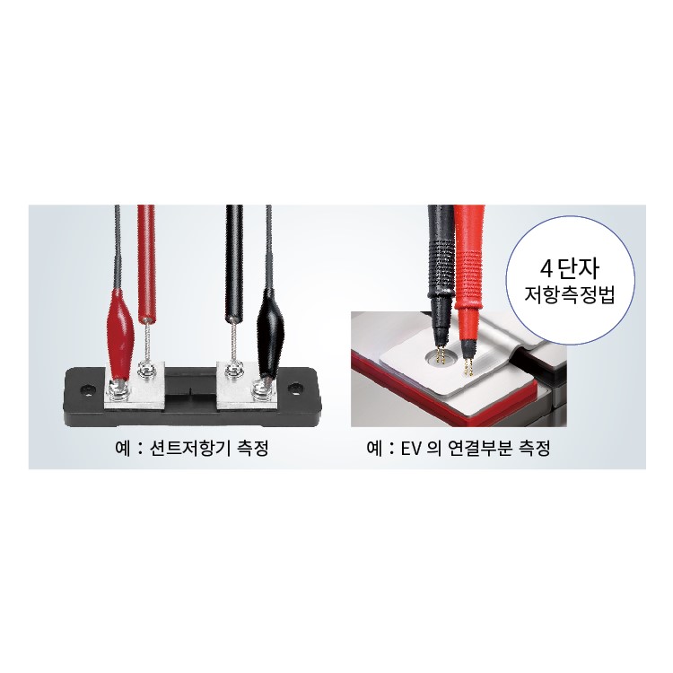 - 배터리, 모터, 전자부품 등의 개발시 낮은 저항값을 정확하게 측정