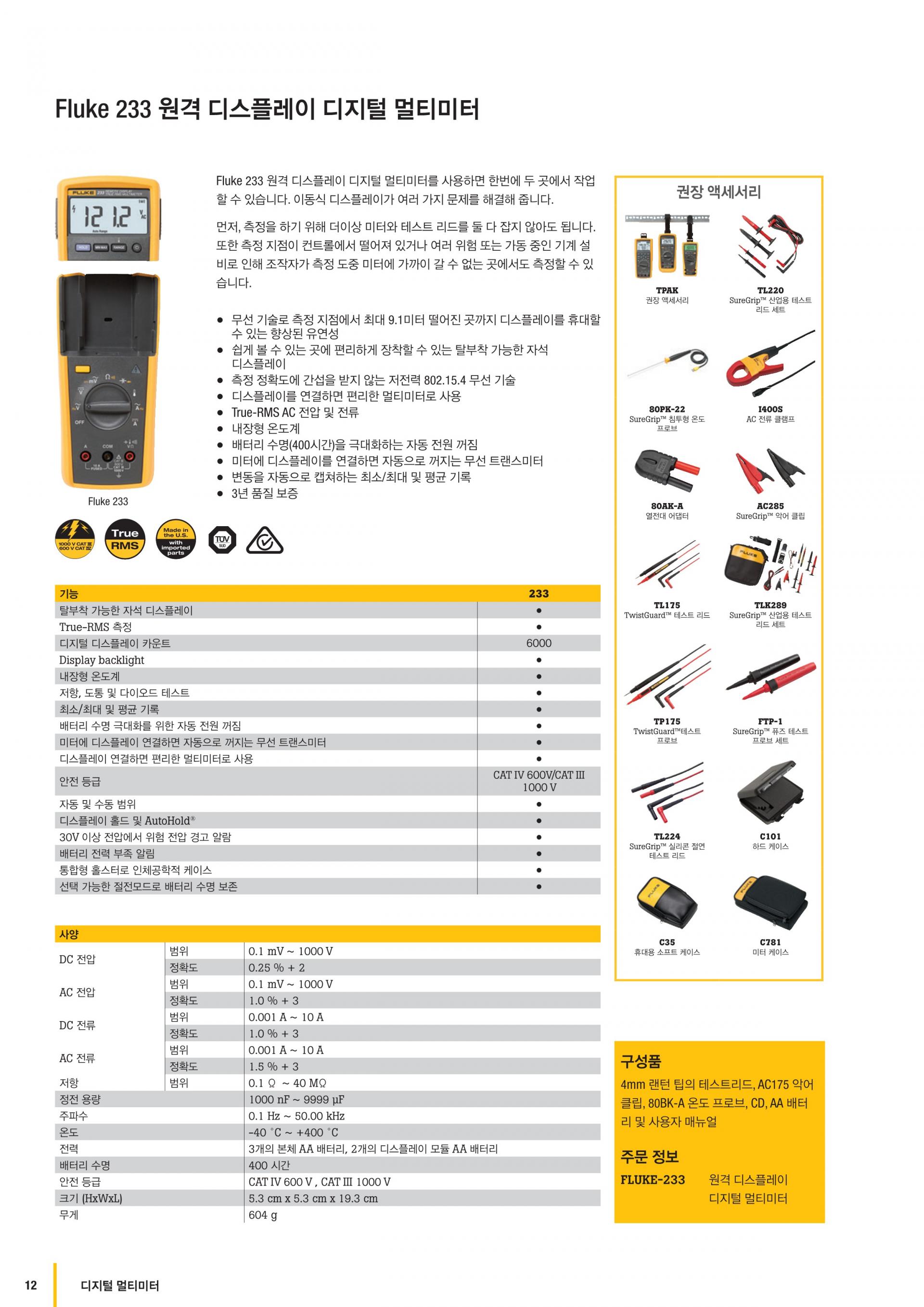 | 보증 및 보호 | 안전 등급 | CAT IV 600V, CAT III 1000V |