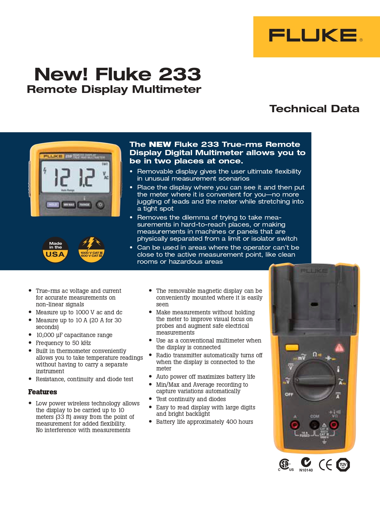 True-RMS Fluke 233 원격 디스플레이가 장착된 새로운 디지털 멀티미터를 통해 까다로운 측정 환경에서 유연성을 극대화할 수 있습니다.