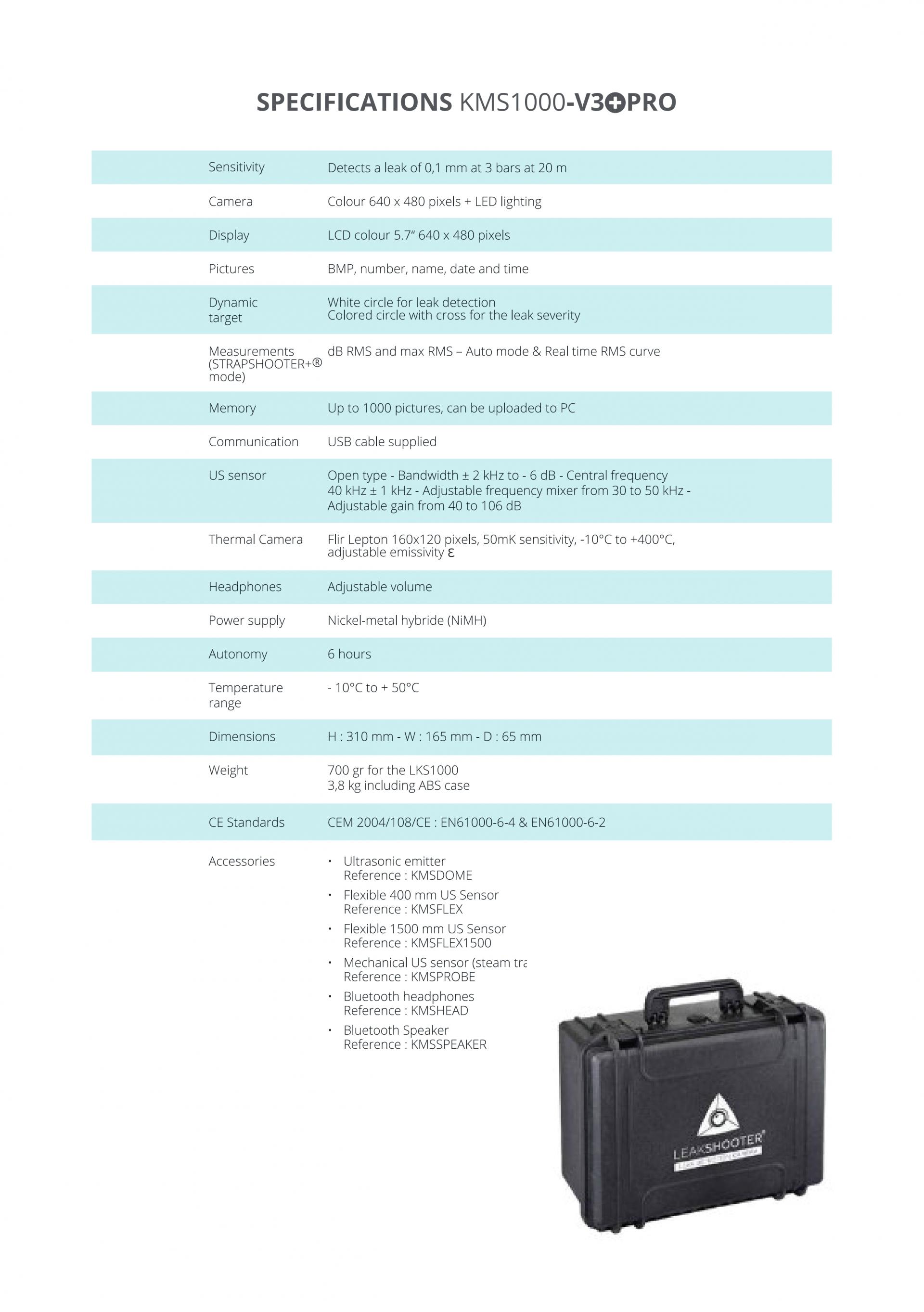 - 20m 거리에서 0.1mm(at 3 bars)의 감도로 가스 누출 탐지 가능