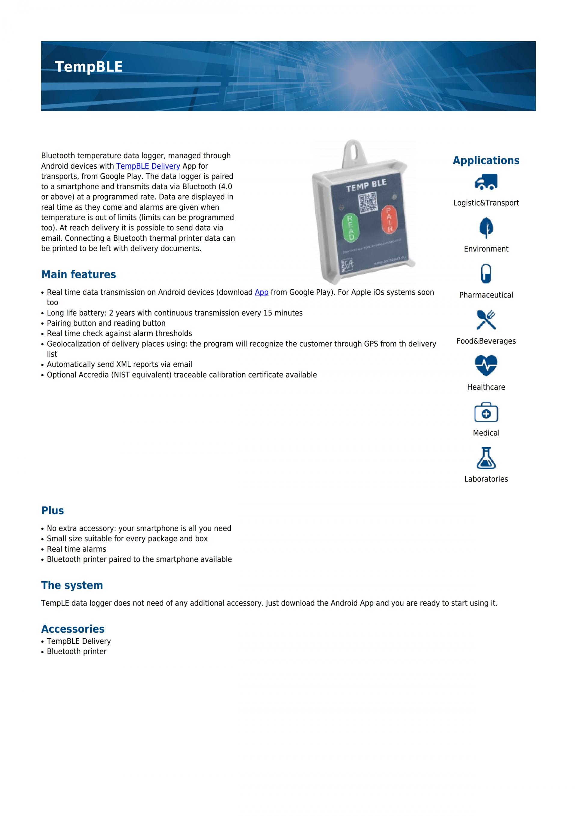 TECNOSOFT TempBLE Bluetooth temperature data logger