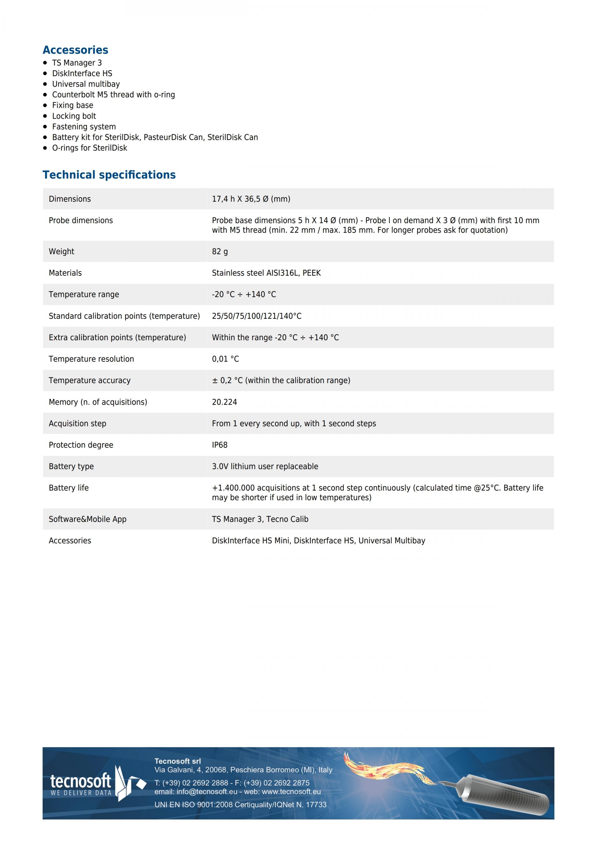 TECNOSOFT Sterildisk 시리즈 17,4 h X 36,5 Ø 무선데이터로거