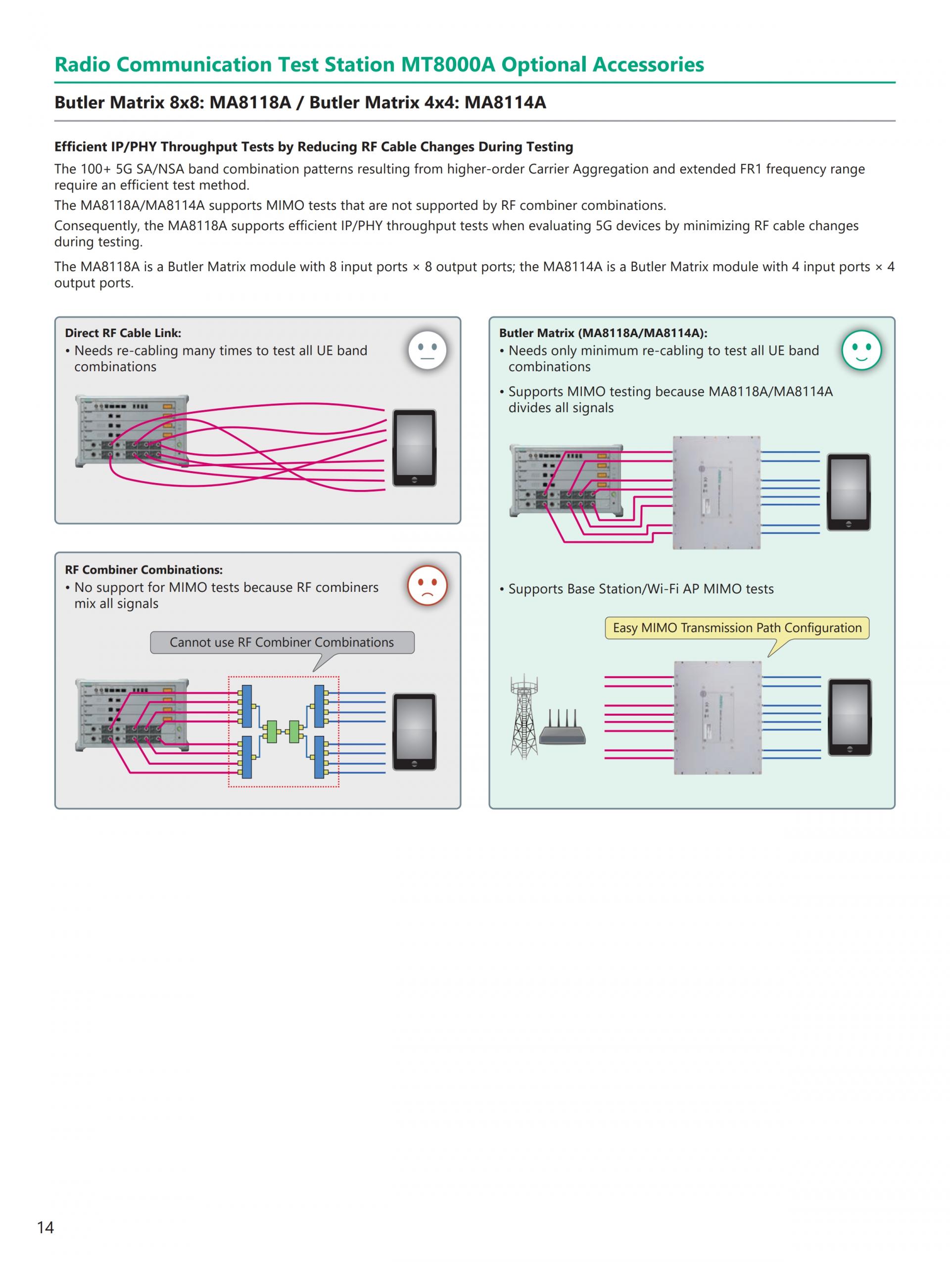 - Bluetooth v5.1에서 추가된 방향 탐지 기술(Angle of Arrival / Angle of Departure: AoA/AoD)에서 요구되는 RF 시험을 추가 옵션을 통해 지원.